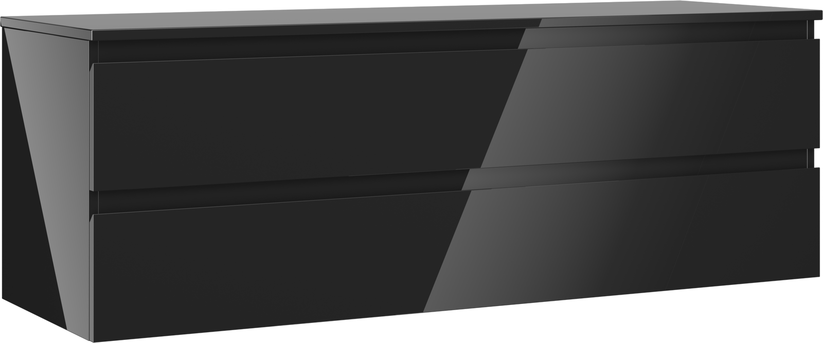 Mexen Orio 140 cm Under-Sink Bathroom Cabinet with Countertop, 2 Drawers, Black Gloss - 91A10-14047-2-BFFC70