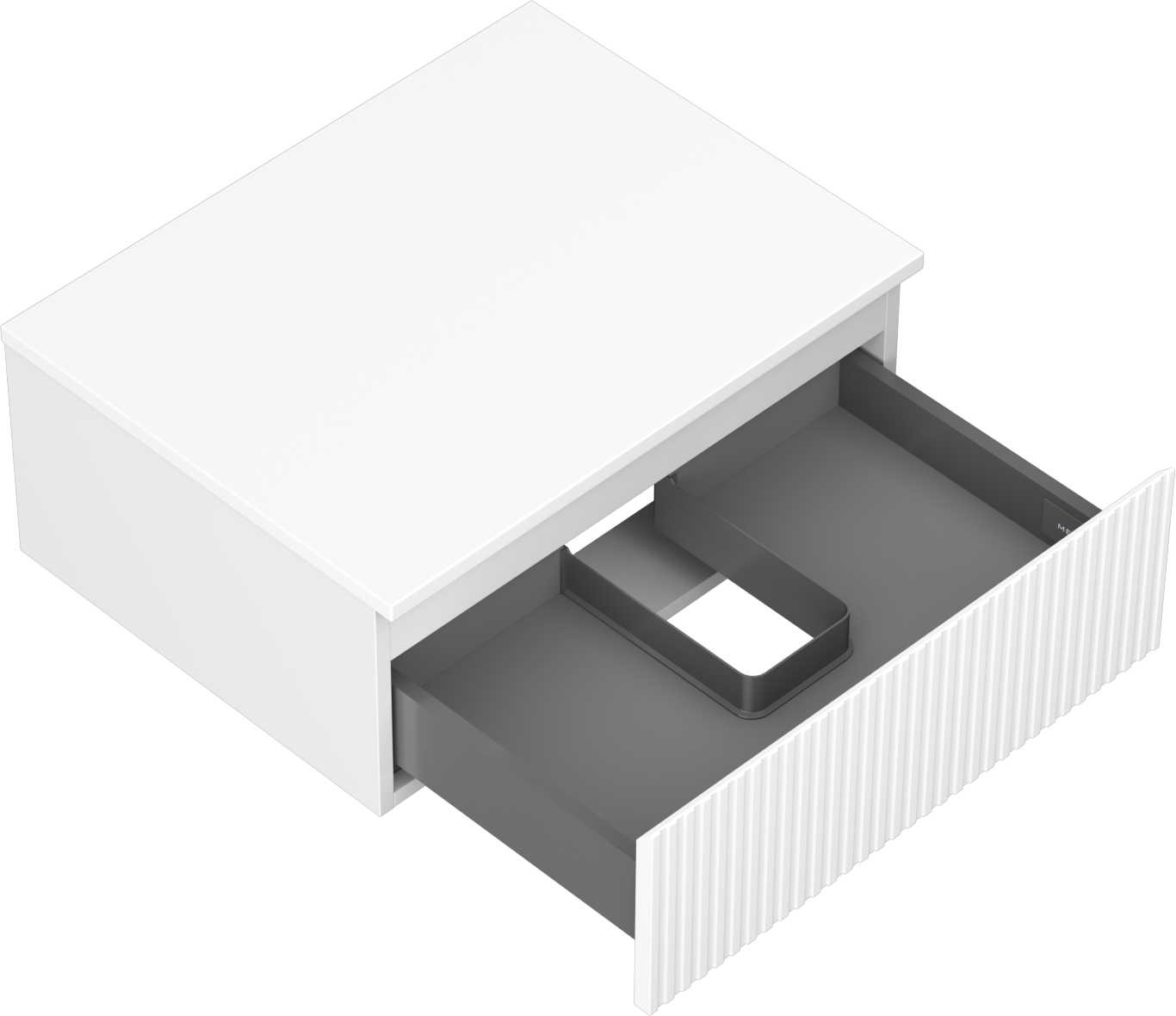 The cut-out in the drawer is designed to accommodate a siphon, which is essential for washbasin installations. This allows the furniture to be installed fully functionally, without having to sacrifice drawer space for the installation.