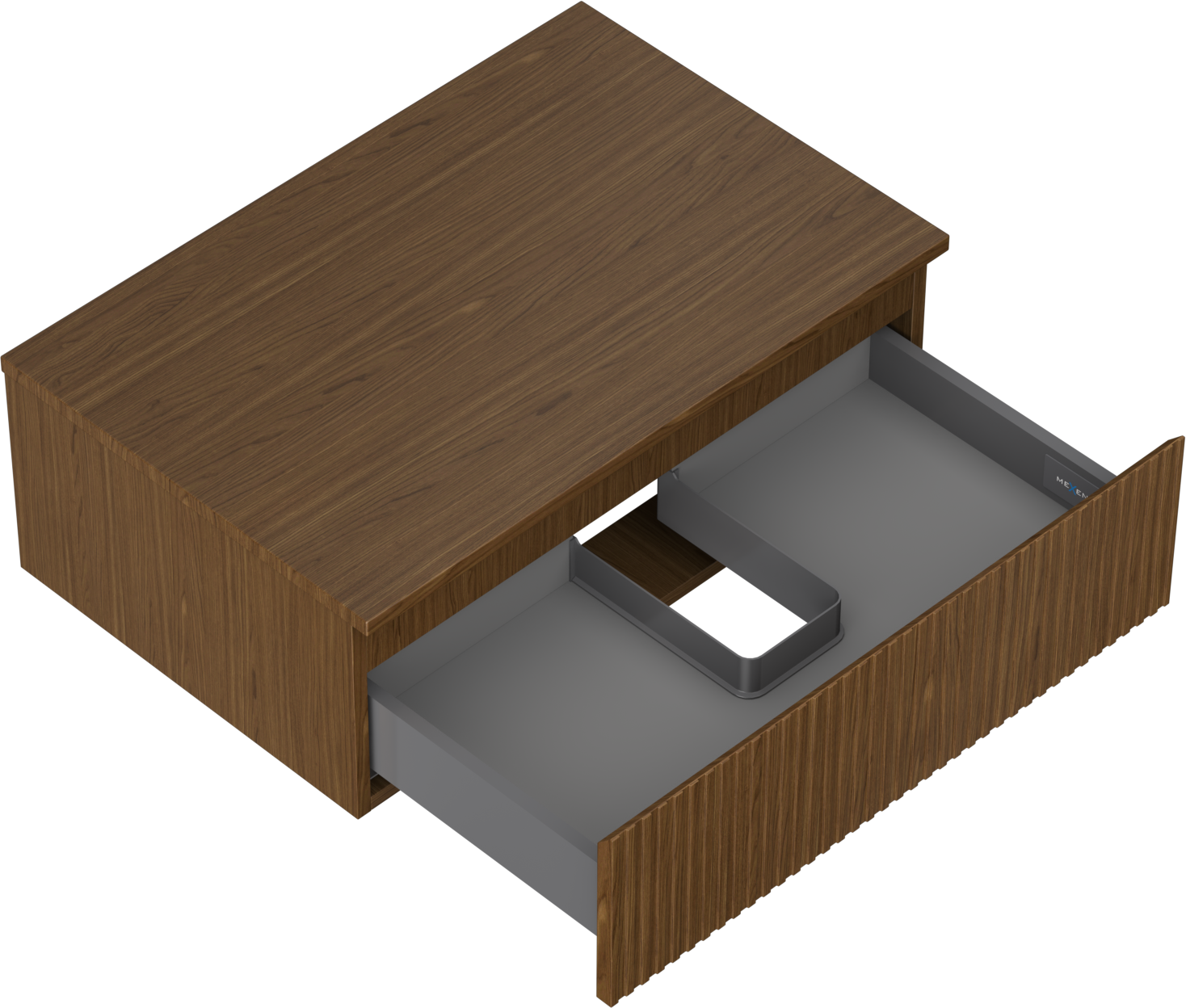 The cutout in the drawer is designed in such a way as to accommodate the siphon, which is essential in sink installations. This allows the furniture to be fully functional without having to give up drawer space for the installation.
