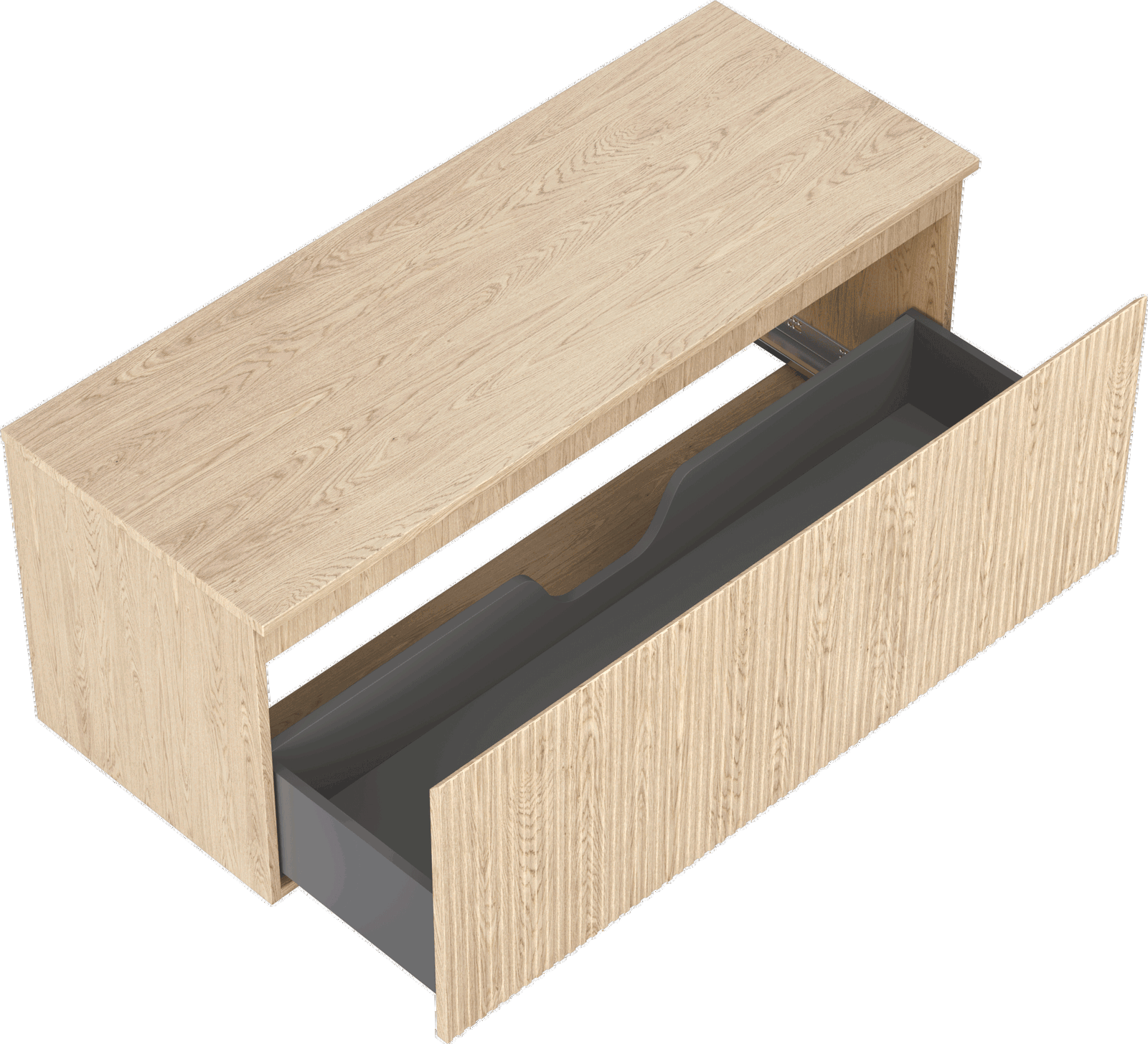The cut-out in the drawer is designed to accommodate a siphon, which is essential for washbasin installations. This allows the furniture to be installed fully functionally, without having to sacrifice drawer space for the installation.