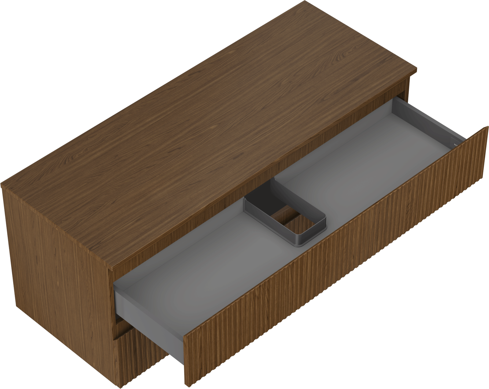 The cutout in the drawer is designed in such a way as to accommodate the siphon, which is essential in sink installations. This allows the furniture to be fully functional without having to give up drawer space for the installation.
