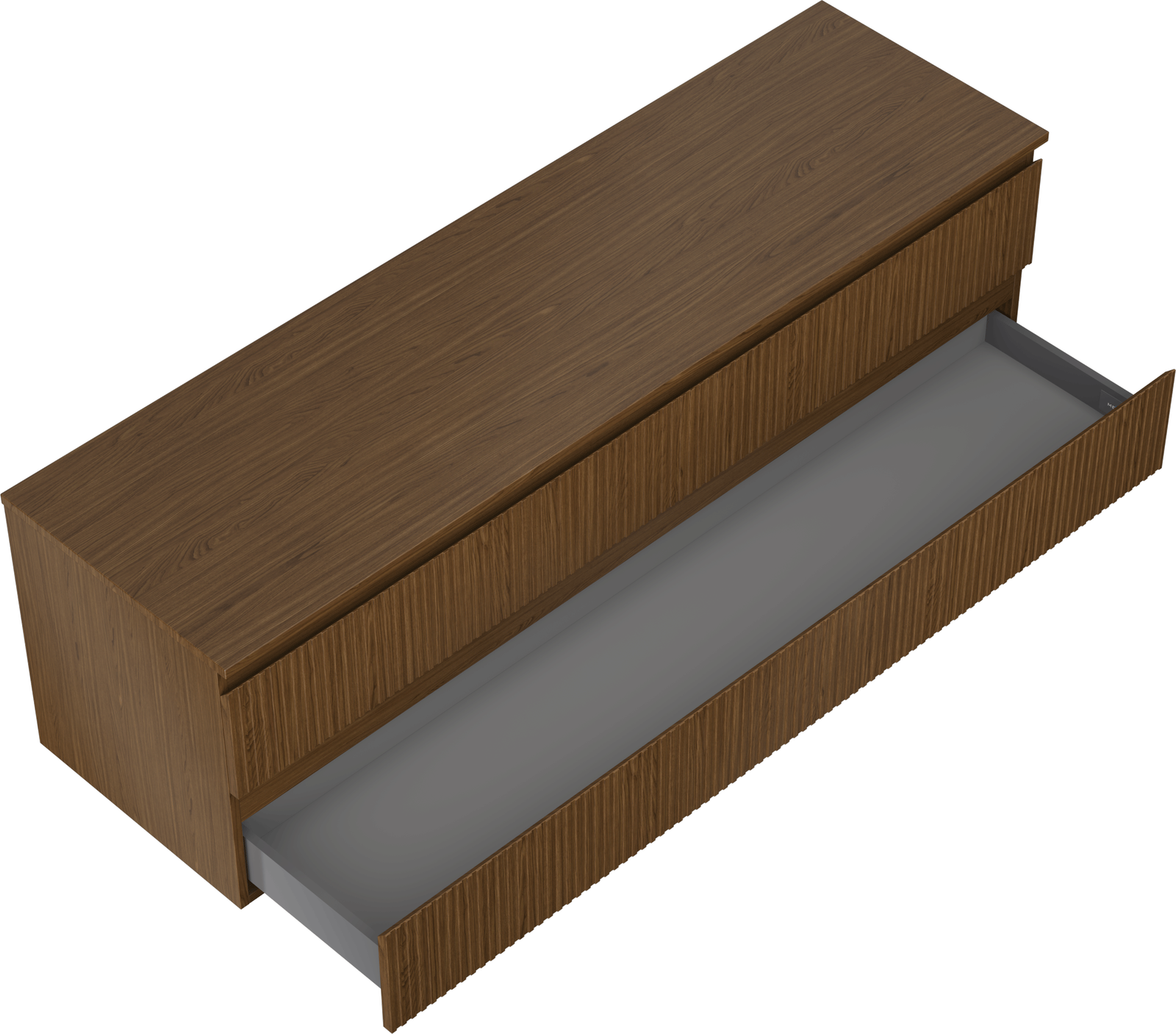 Mexen Rivel bathroom cabinet under-sink 160 cm with countertop, 2 drawers, grooved, walnut - 91A20-16047-2-BFFC86