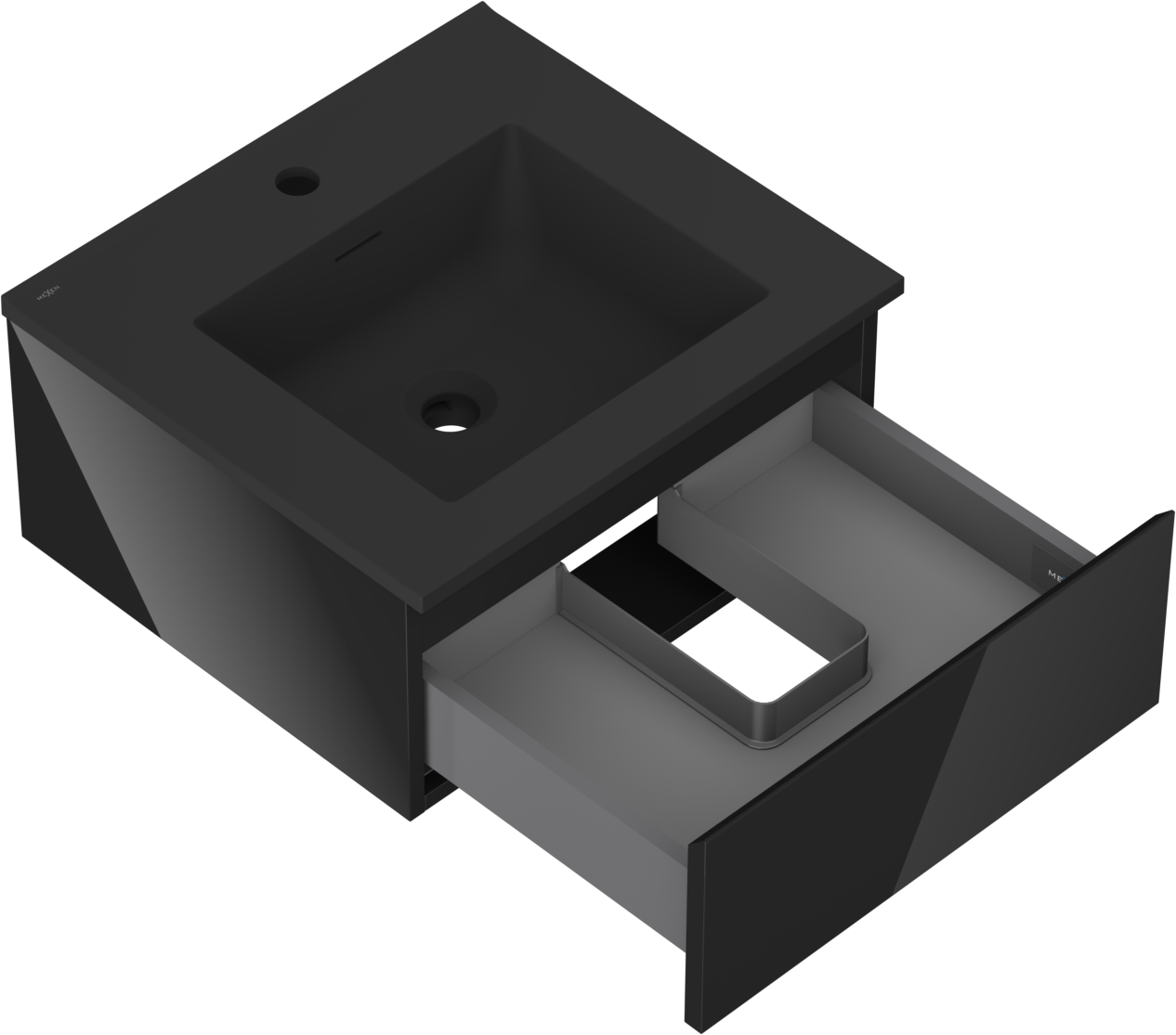 Mexen Orio 50 cm bathroom cabinet with Otis basin, 1 drawer, black gloss/black matte - 91A10-05023-1-BF70-W18M71