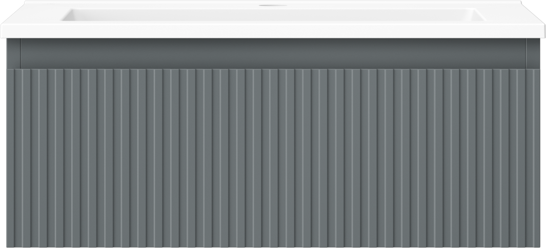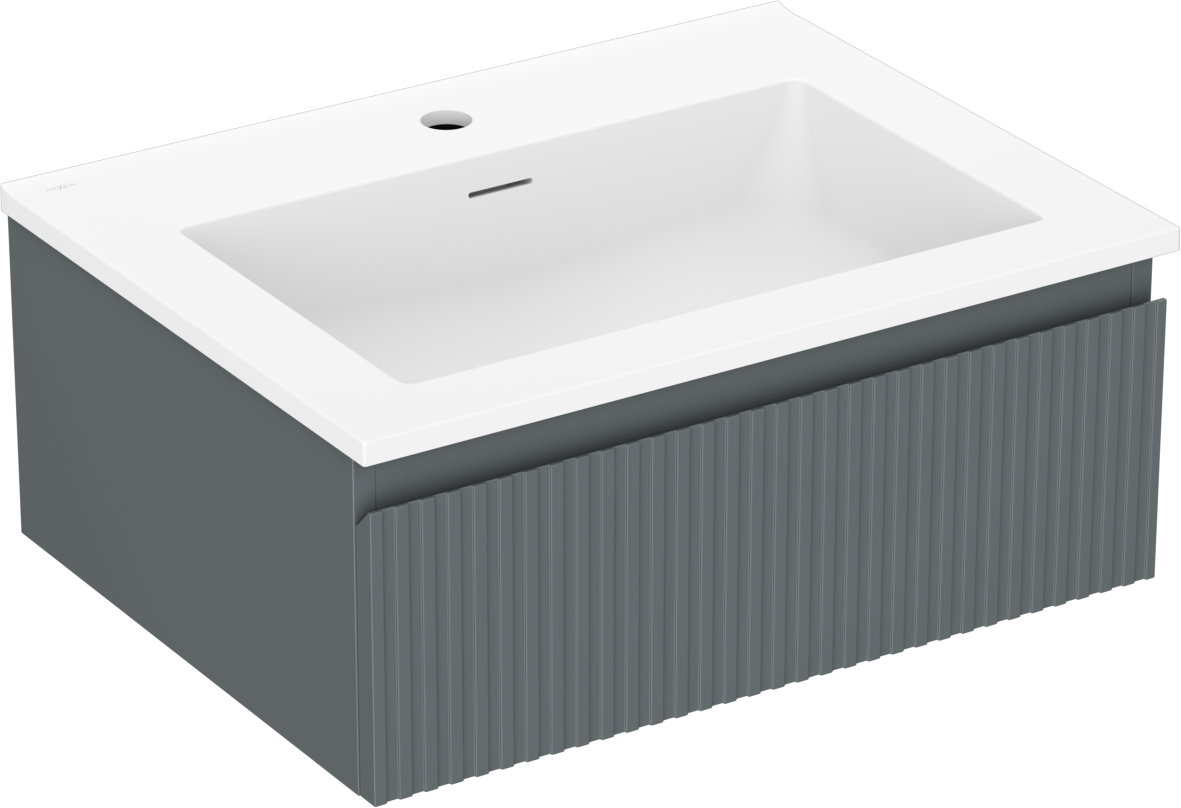 Mexen Rivel bathroom cabinet 60 cm with Otis washbasin, 1 drawer, fluted, graphite matt/white matt - 91A20-06023-1-BF66-W18M01