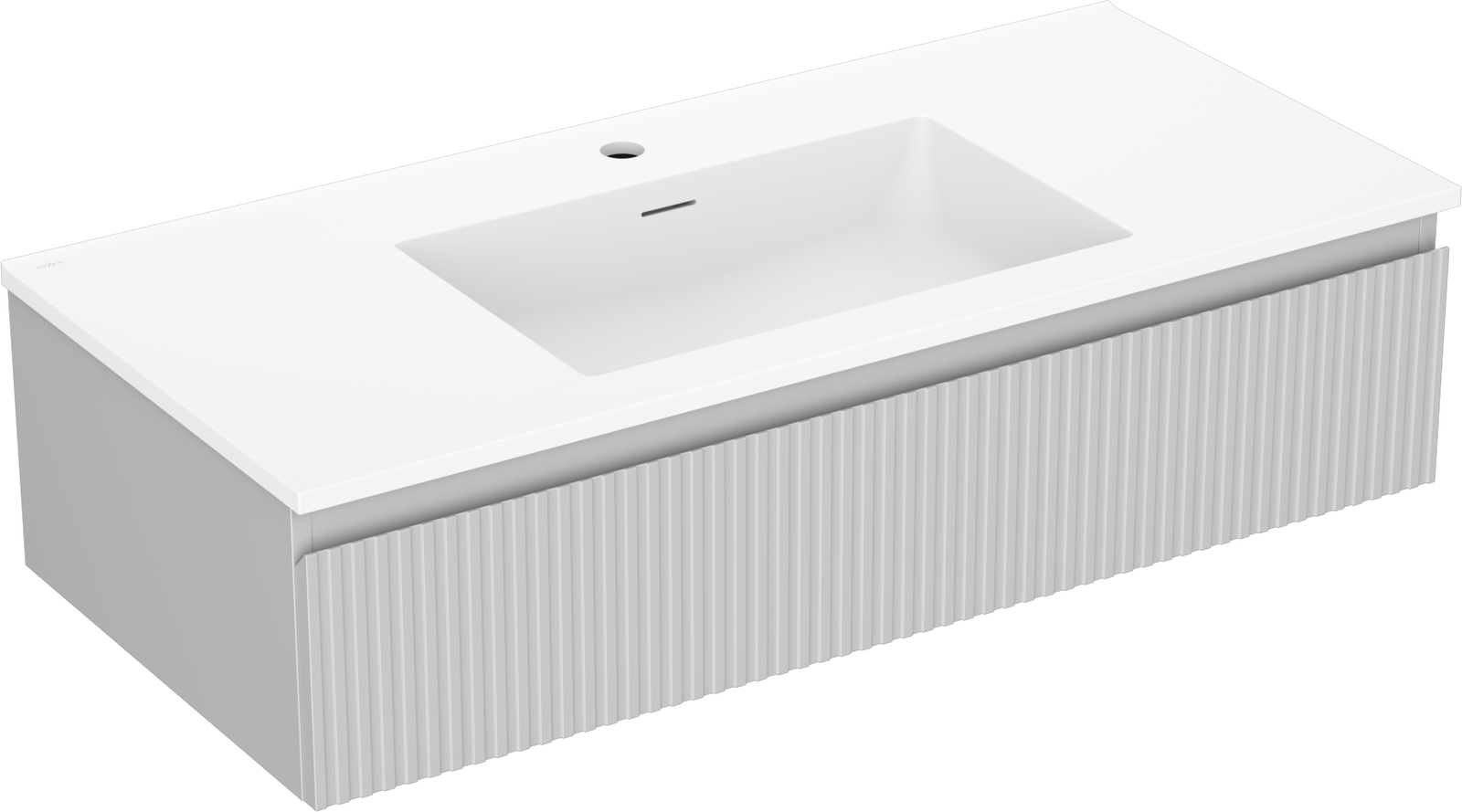 Mexen Rivel 100 cm bathroom cabinet with Otis washbasin, 1 drawer, fluted, grey matt/white matt - 91A20-10023-1-BF62-W18M01