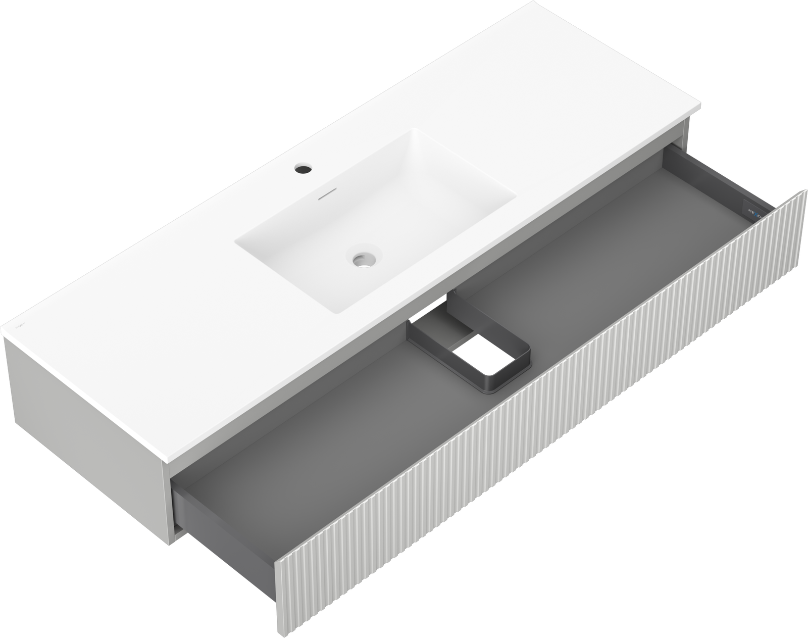 Mexen Rivel 140 cm Bathroom Cabinet with Otis Sink, 1 Drawer, Fluted, Grey Matte/White Matte - 91A20-14023-1-BF62-W18M01