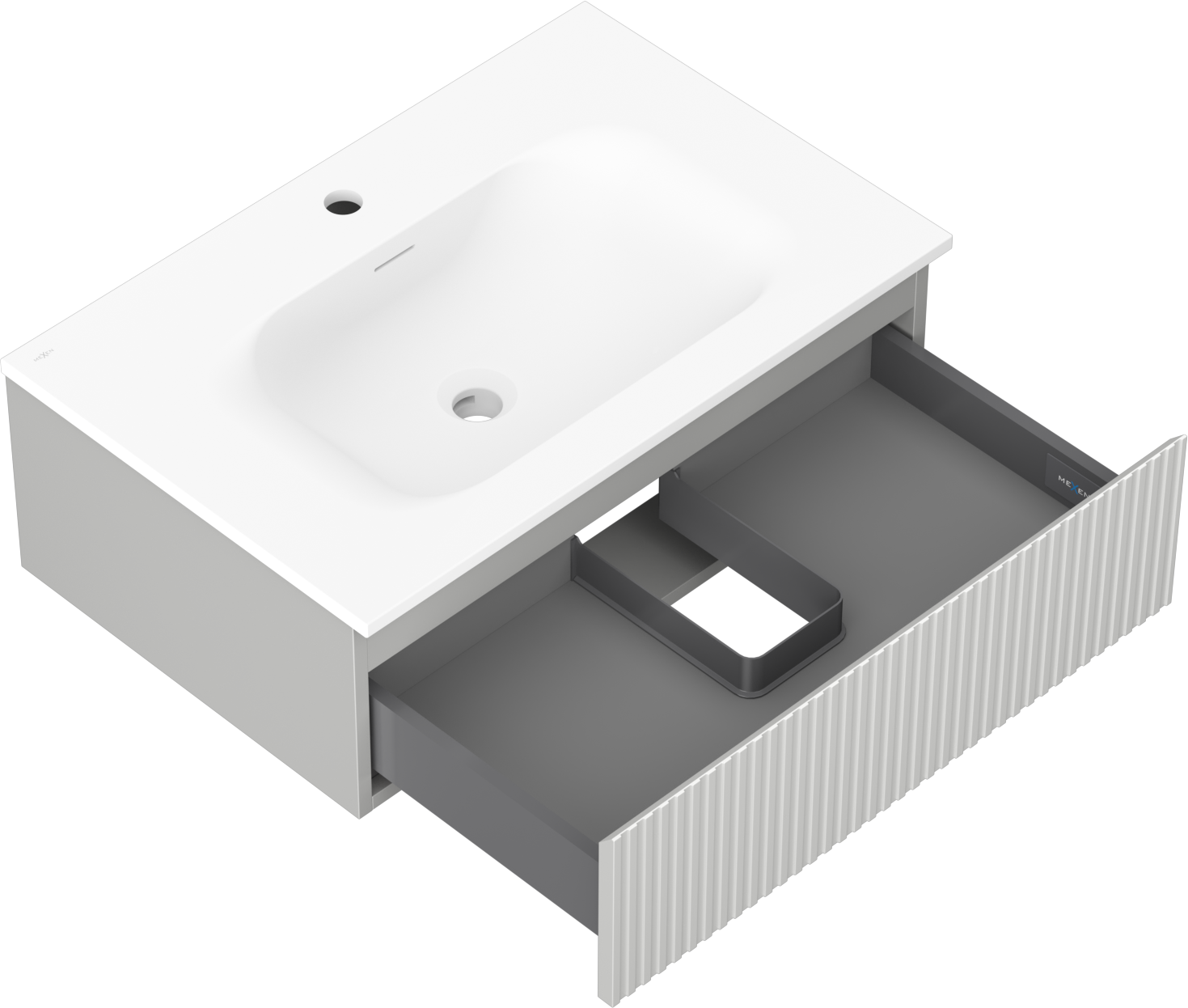 Mexen Rivel 70 cm Bathroom Cabinet with Vela Sink, 1 Drawer, Grooved, Gray Matte/White Matte - 91A20-07023-1-BF62-W23M01