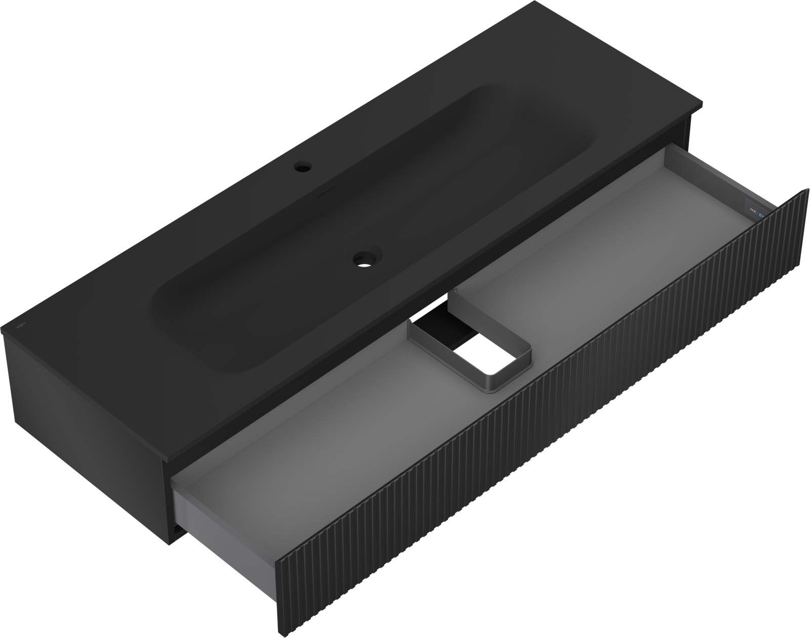 Mexen Rivel bathroom cabinet 140 cm with Vela sink, 1 drawer, fluted, black matte - 91A20-14023-1-BF71-W23M71