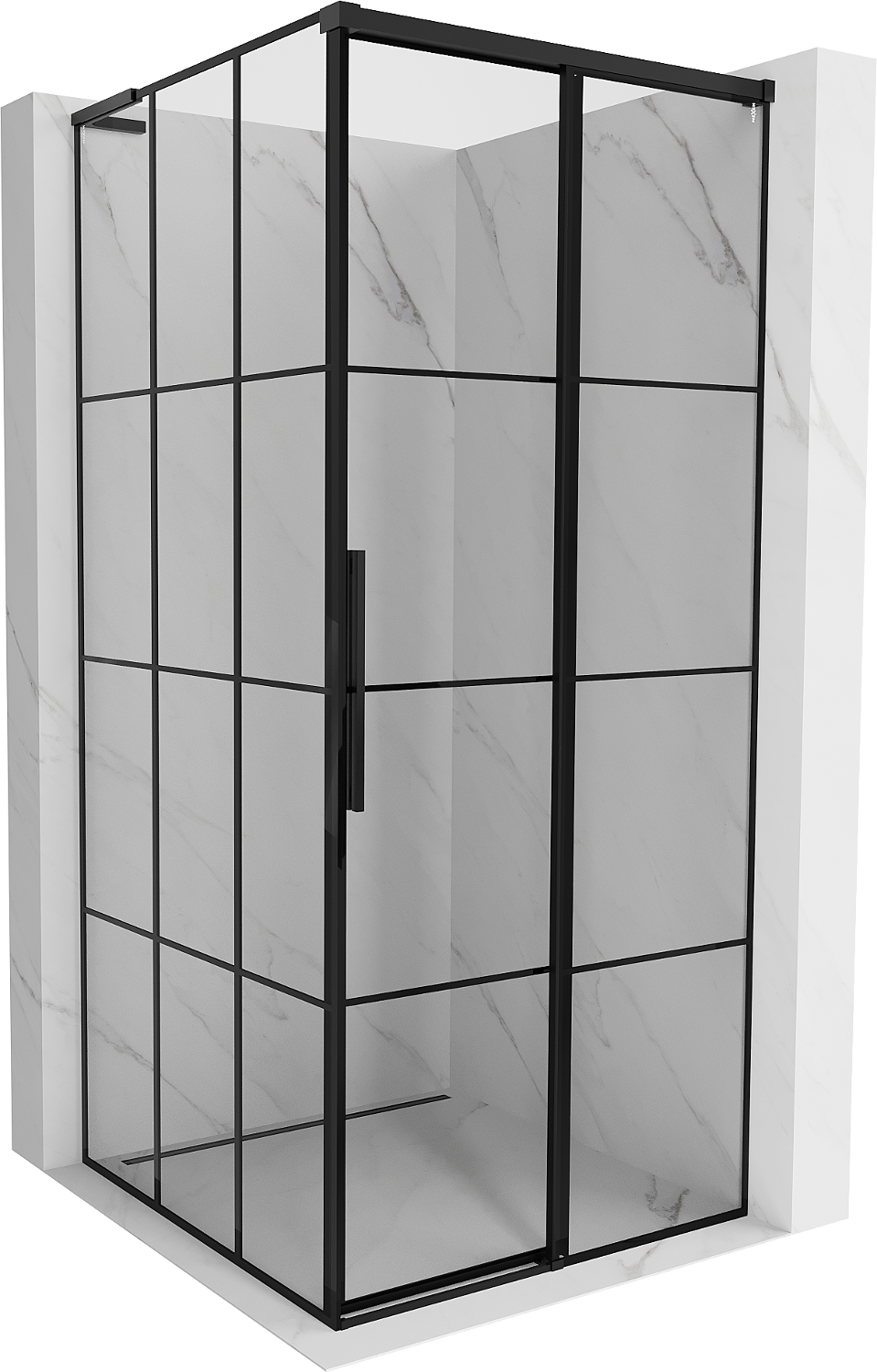 Mexen Rox L right sliding shower enclosure 90 x 90 cm, black grid, black - 8C2L-090-090-70-77-P