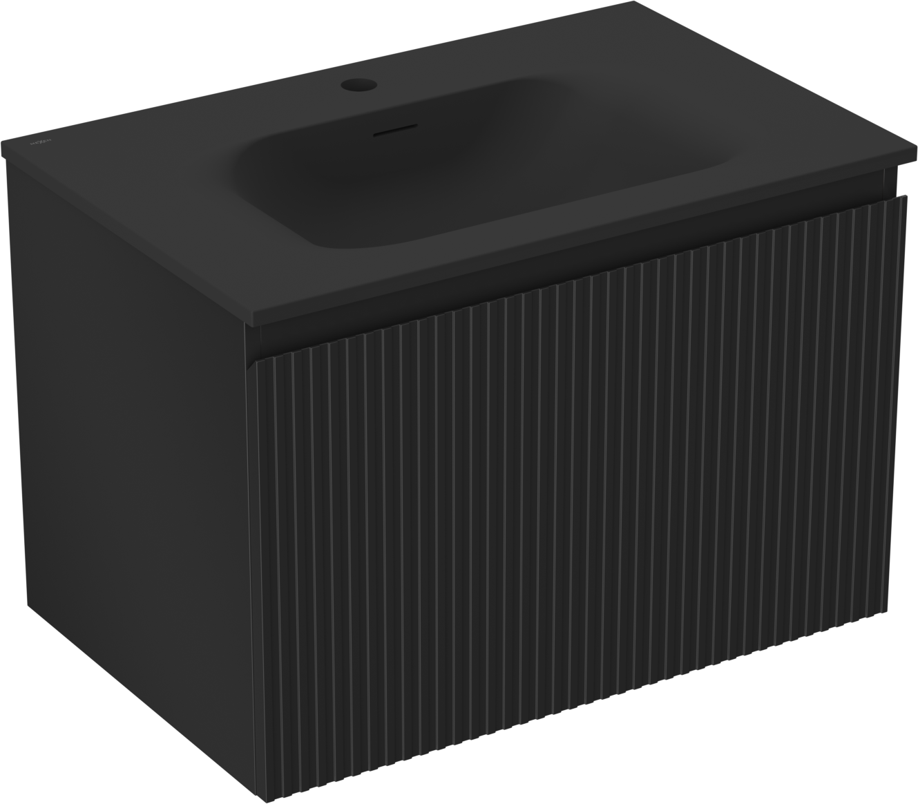 Mexen Rivel bathroom cabinet 70 cm with Vela washbasin, 1 drawer, fluted, black matte - 91A20-07047-1-BF71-W23M71