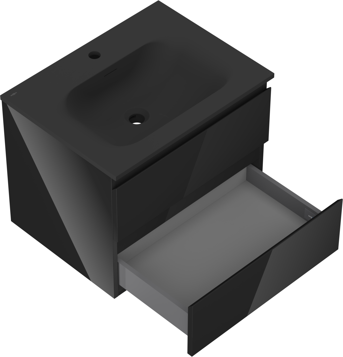 Mexen Orio 60 cm Bathroom Cabinet with Vela Sink, 2 Drawers, Black Gloss/Black Matte - 91A10-06047-2-BFF70-W23M71