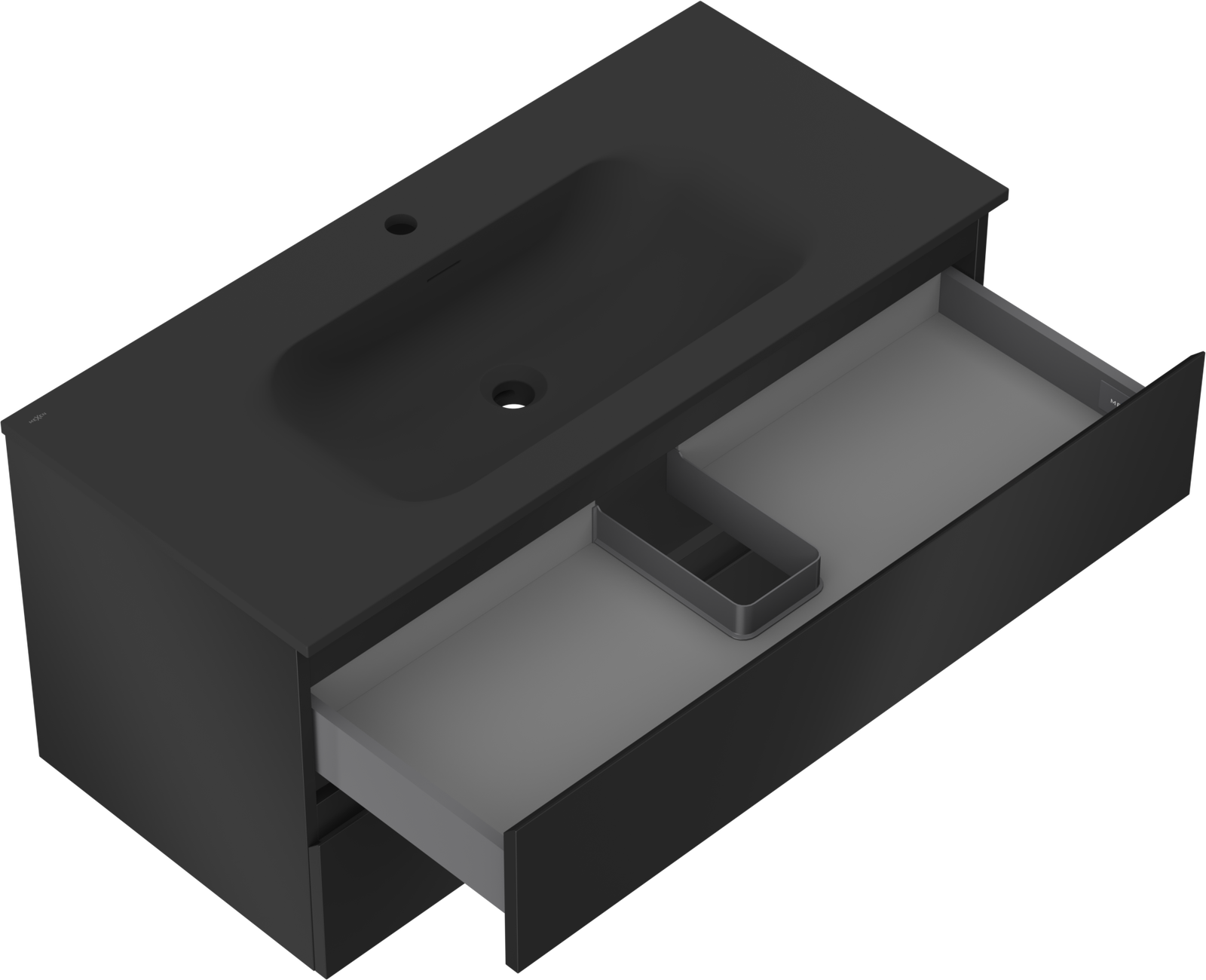 Mexen Orio bathroom cabinet 100 cm with Vela sink, 2 drawers, black matte - 91A10-10047-2-BFF71-W23M71
