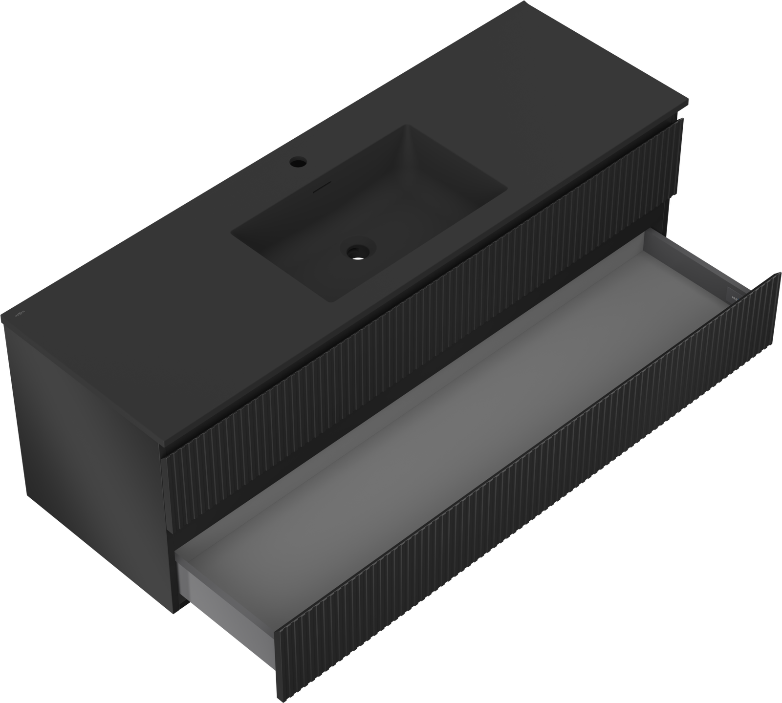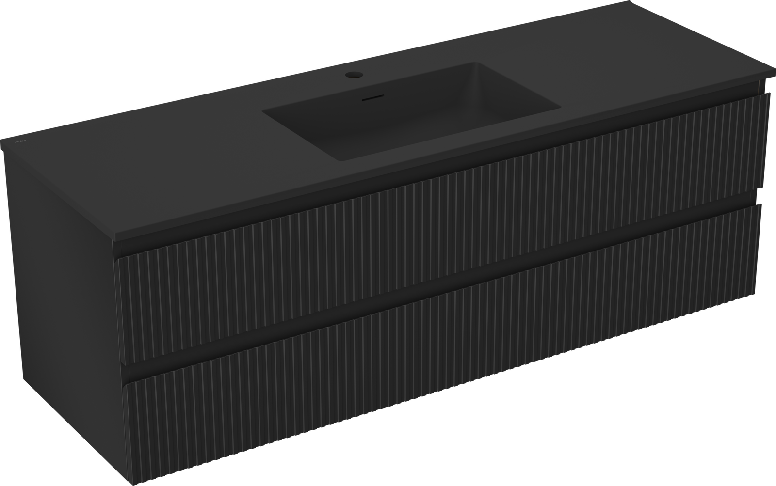 Mexen Rivel bathroom cabinet 140 cm with Otis sink, 2 drawers, grooved, black matte - 91A20-14047-2-BFF71-W18M71