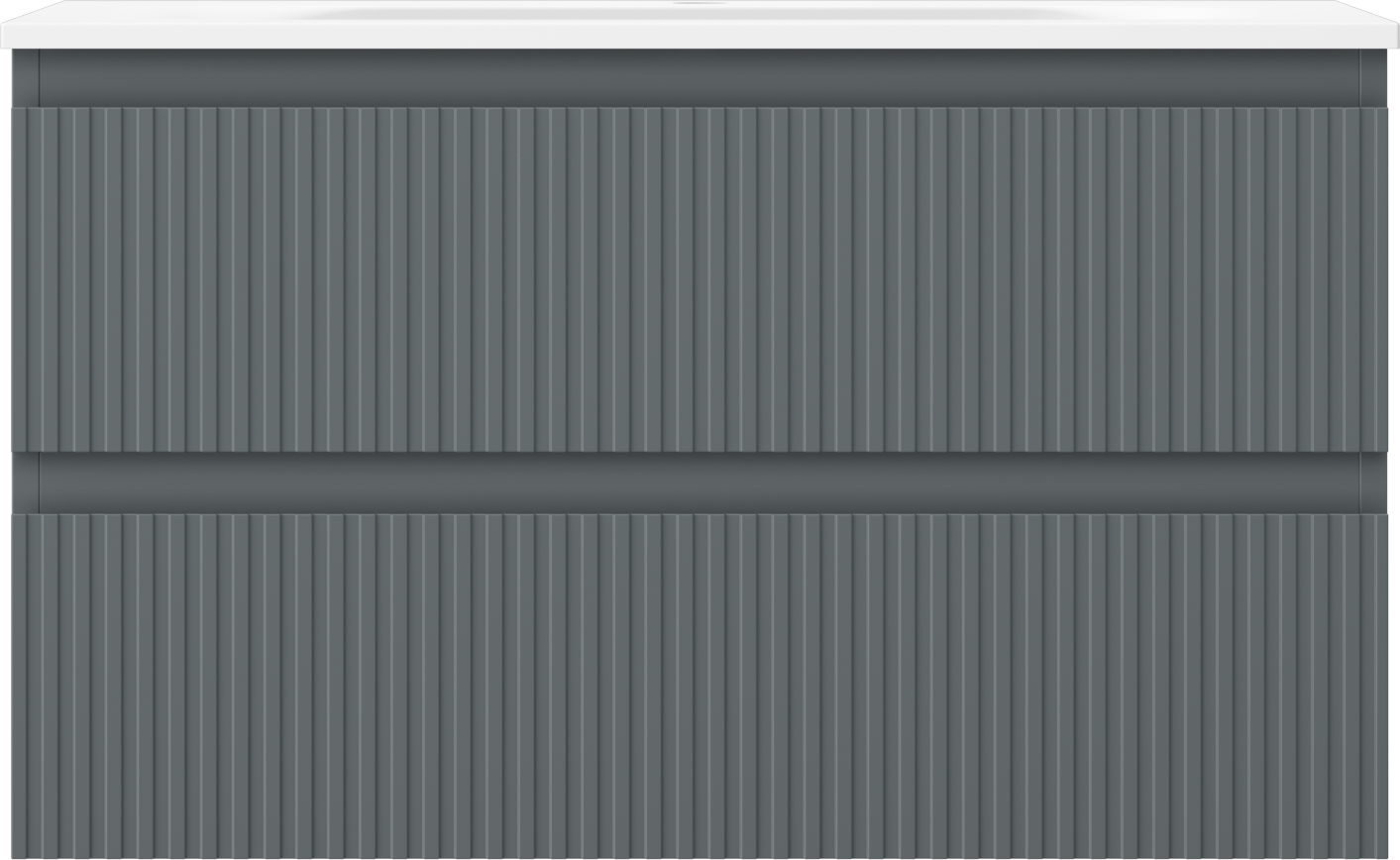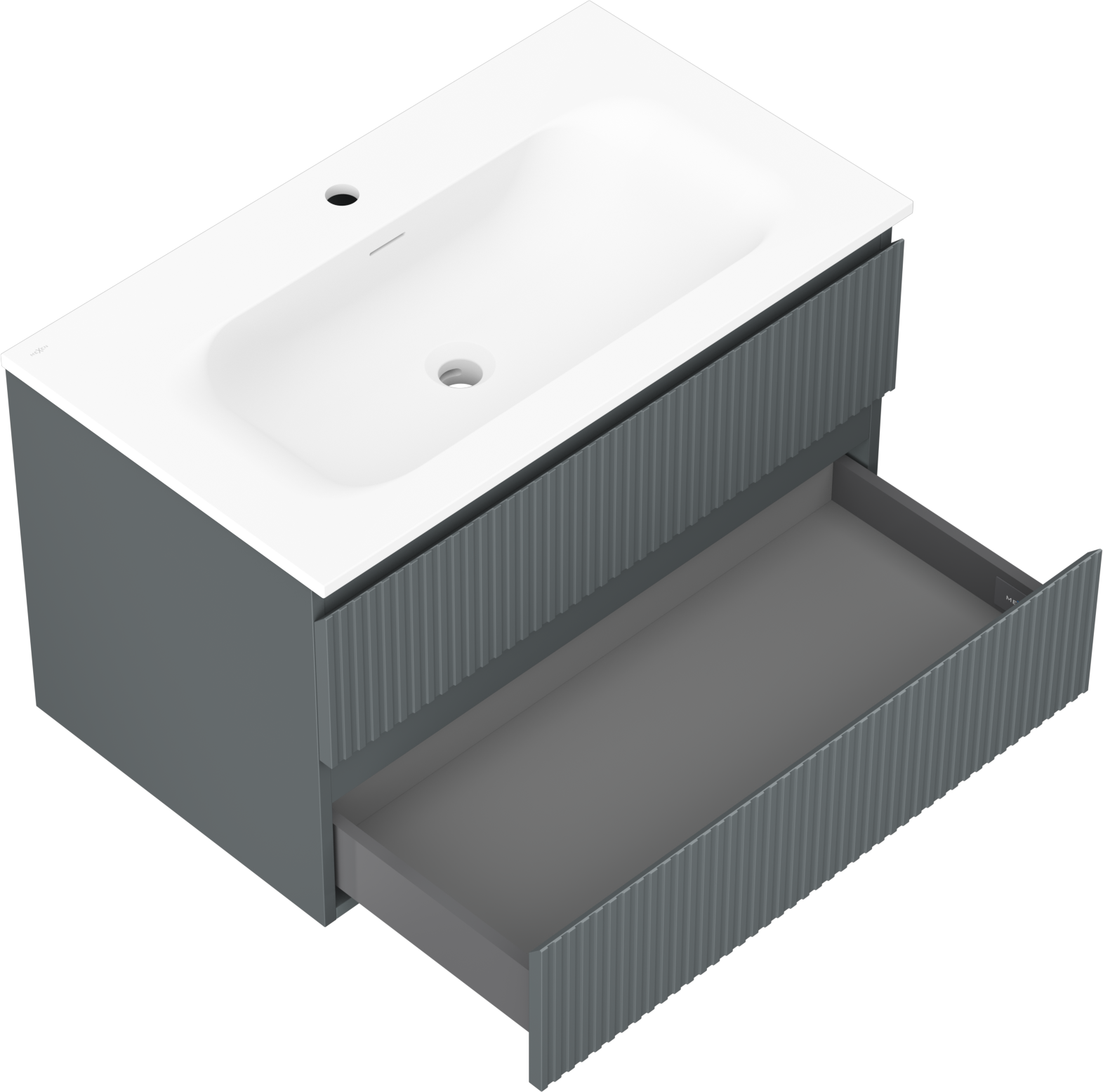 Mexen Rivel 80 cm bathroom cabinet with sink Vela, 2 drawers, fluted, matte graphite/white matte - 91A20-08047-2-BFF66-W23M0