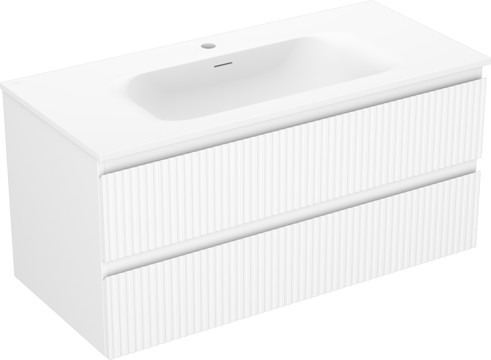 Mexen Rivel bathroom cabinet 100 cm with Vela sink, 2 drawers, grooved, white matt - 91A20-10047-2-BFF01-W23M01