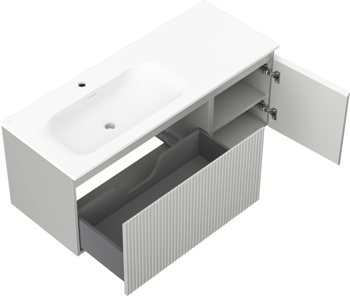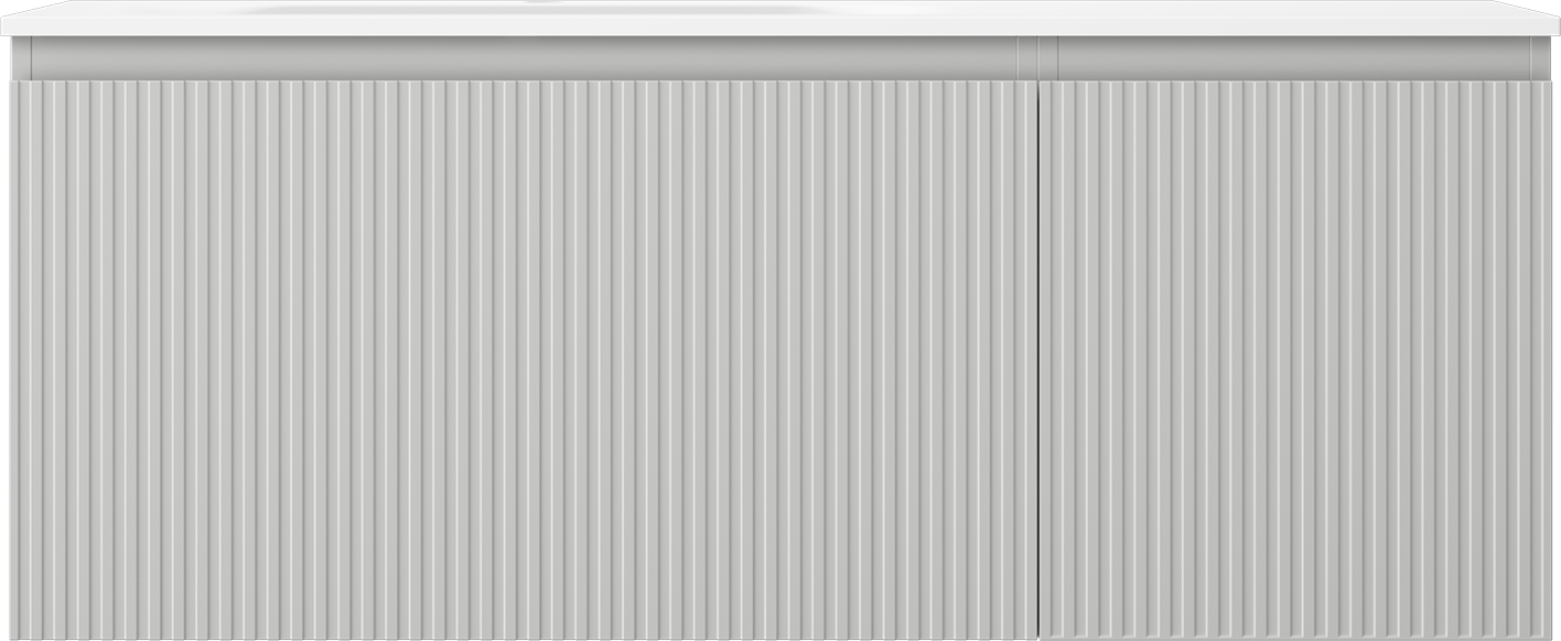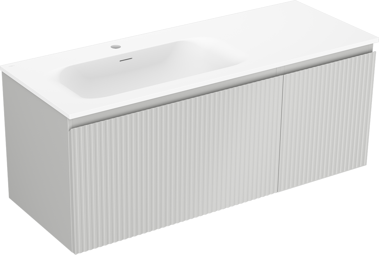 Mexen Rivel bathroom cabinet 120 cm with Vela left sink, 1S, 1D, fluted, gray matte/white matte - 91A23-12047-3-BBFF62-W23L01