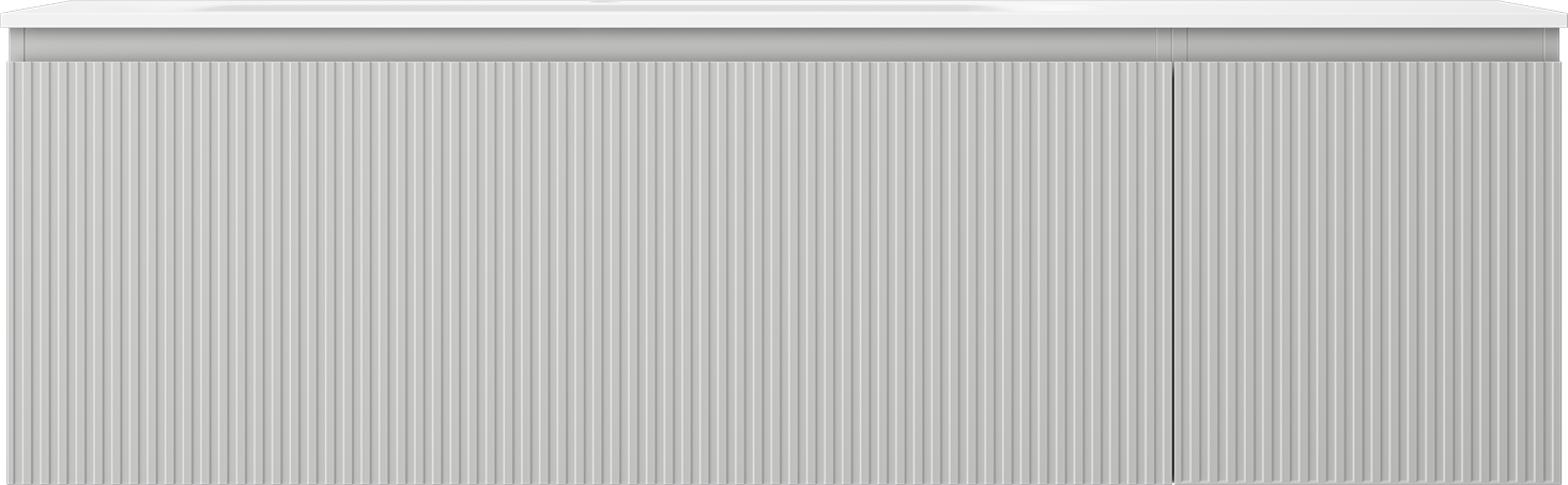 Mexen Rivel bathroom cabinet 160 cm with left Vela sink, 1S, 1D, grooved, gray matte/white matte - 91A23-16047-3-BBFF62-W23L01