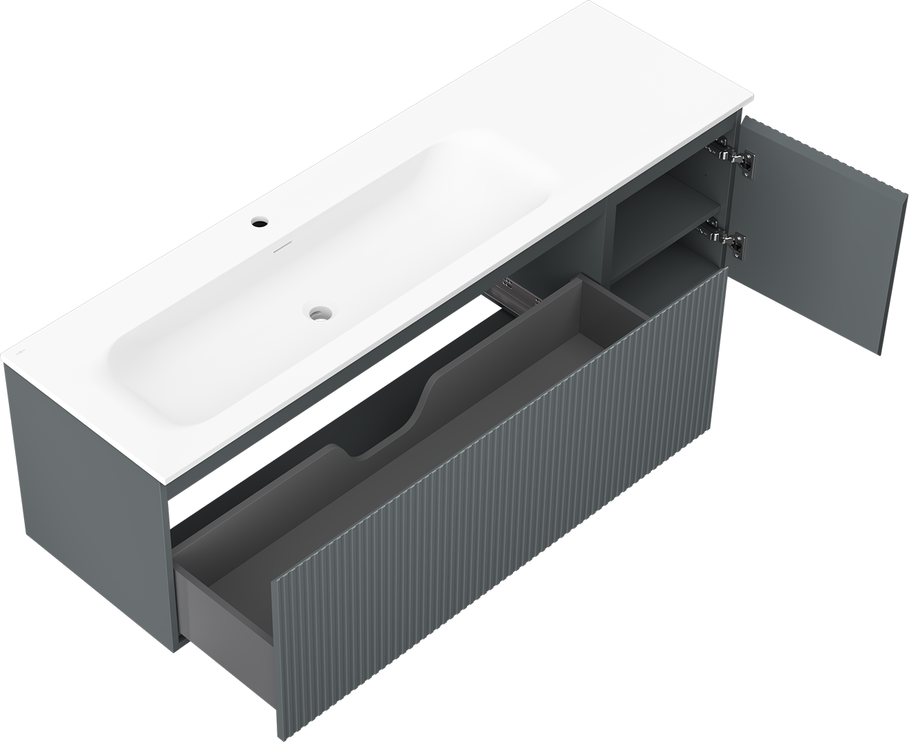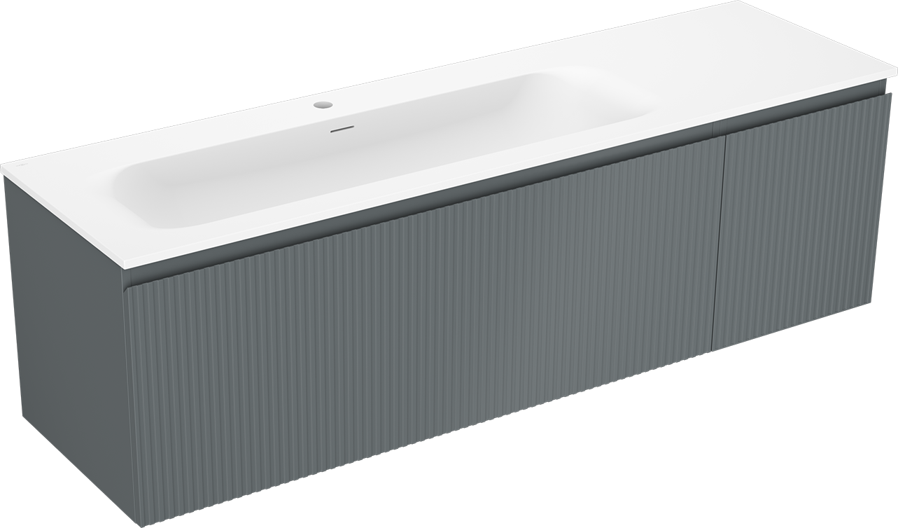 Mexen Rivel bathroom cabinet 160 cm with Vela washbasin left, 1S, 1D, fluted, graphite matte/white matte