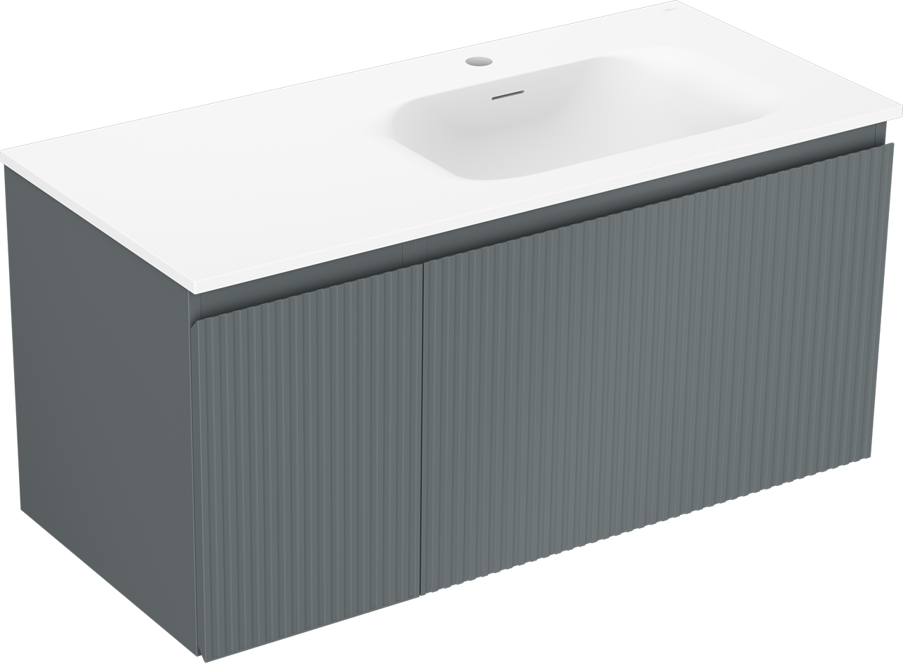 Mexen Rivel bathroom cabinet 100 cm with Vela sink right, 1S, 1D, grooved, graphite/white matte - 91A23-10047-3-BBFF66-W23P01
