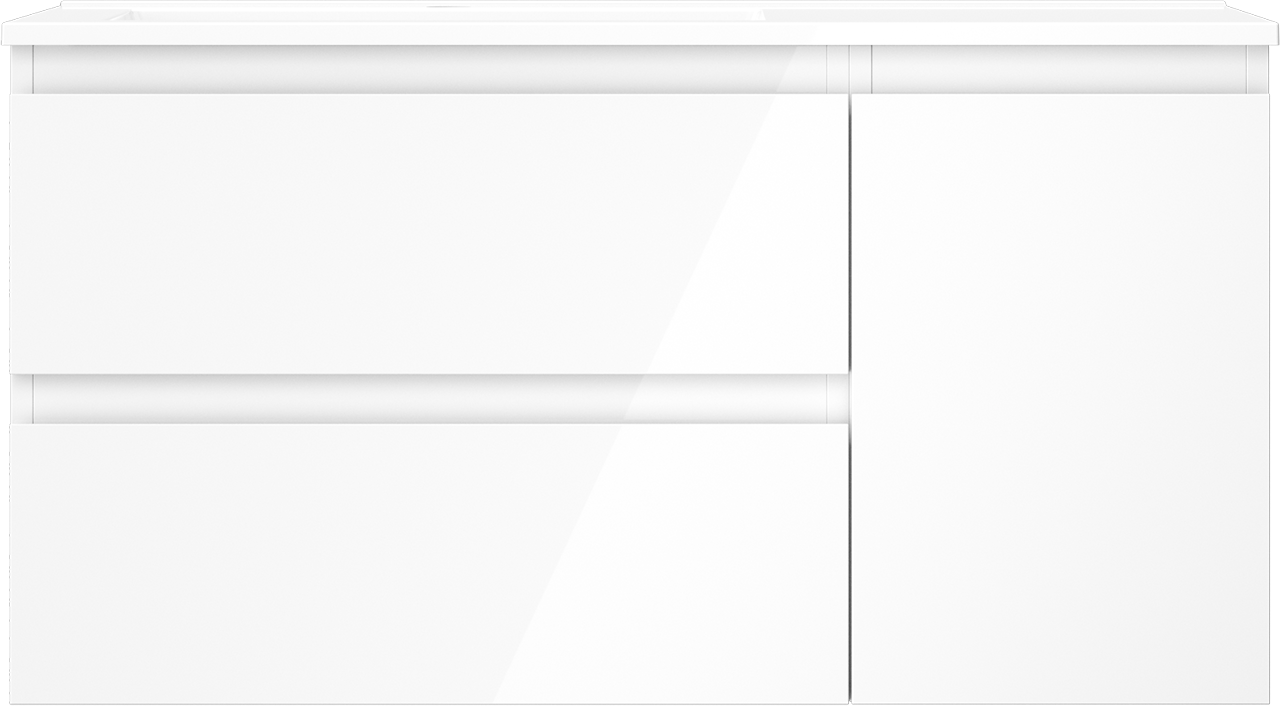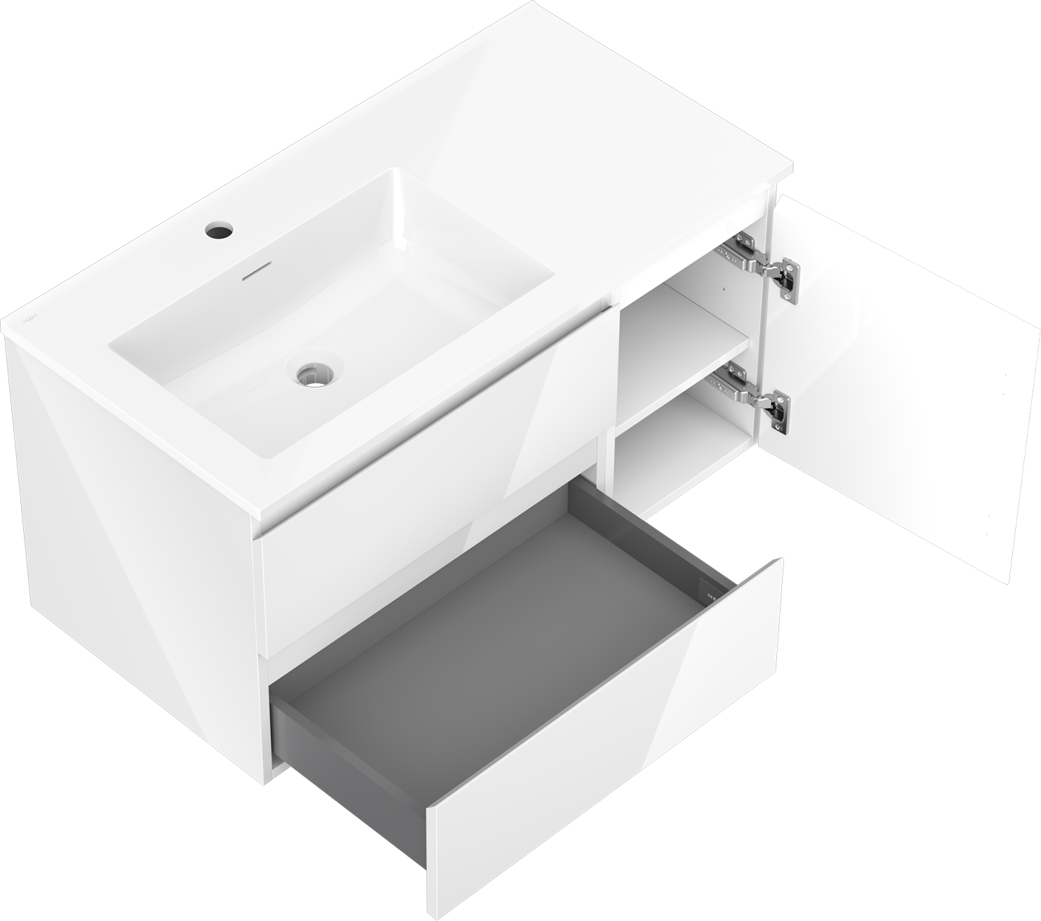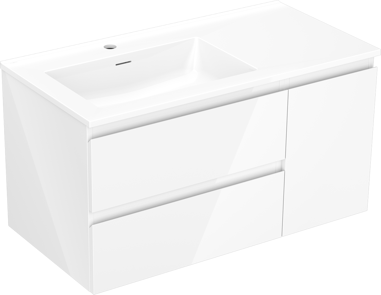 Mexen Orio bathroom cabinet 90 cm with Otis left washbasin, 2S, 1D, white gloss - 91A13-09047-3-BBFFF00-W18L00