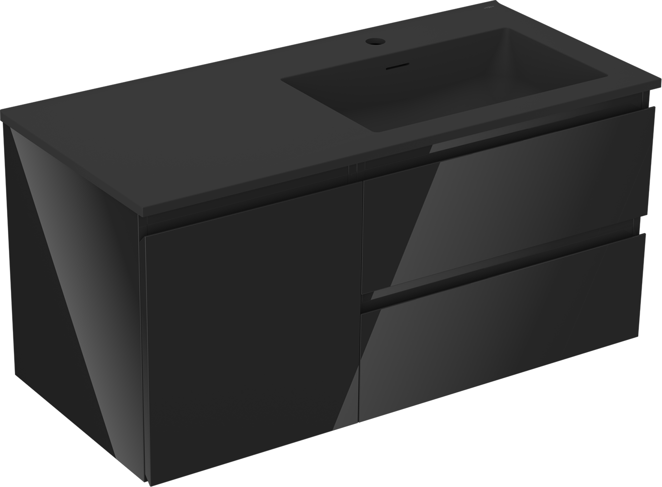 Mexen Orio bathroom cabinet 100 cm with Otis right sink, 2S, 1D, black gloss/black matt - 91A13-10047-3-BBFFF70-W18P71