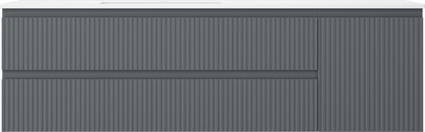 Mexen Rivel bathroom cabinet 160 cm with Otis left sink, 2S, 1D, fluted, graphite/white matte - 91A23-16047-3-BBFFF66-W18L01
