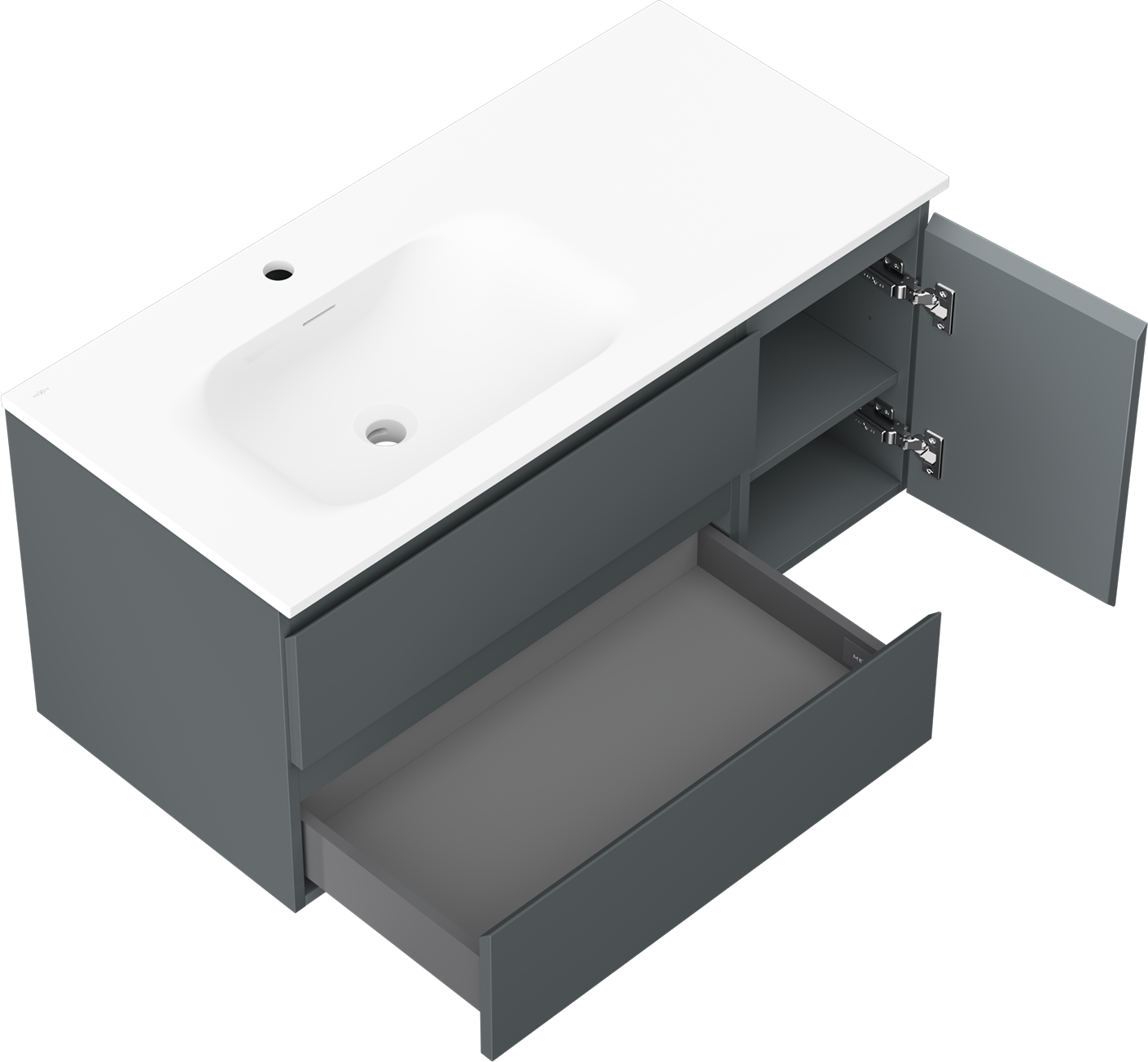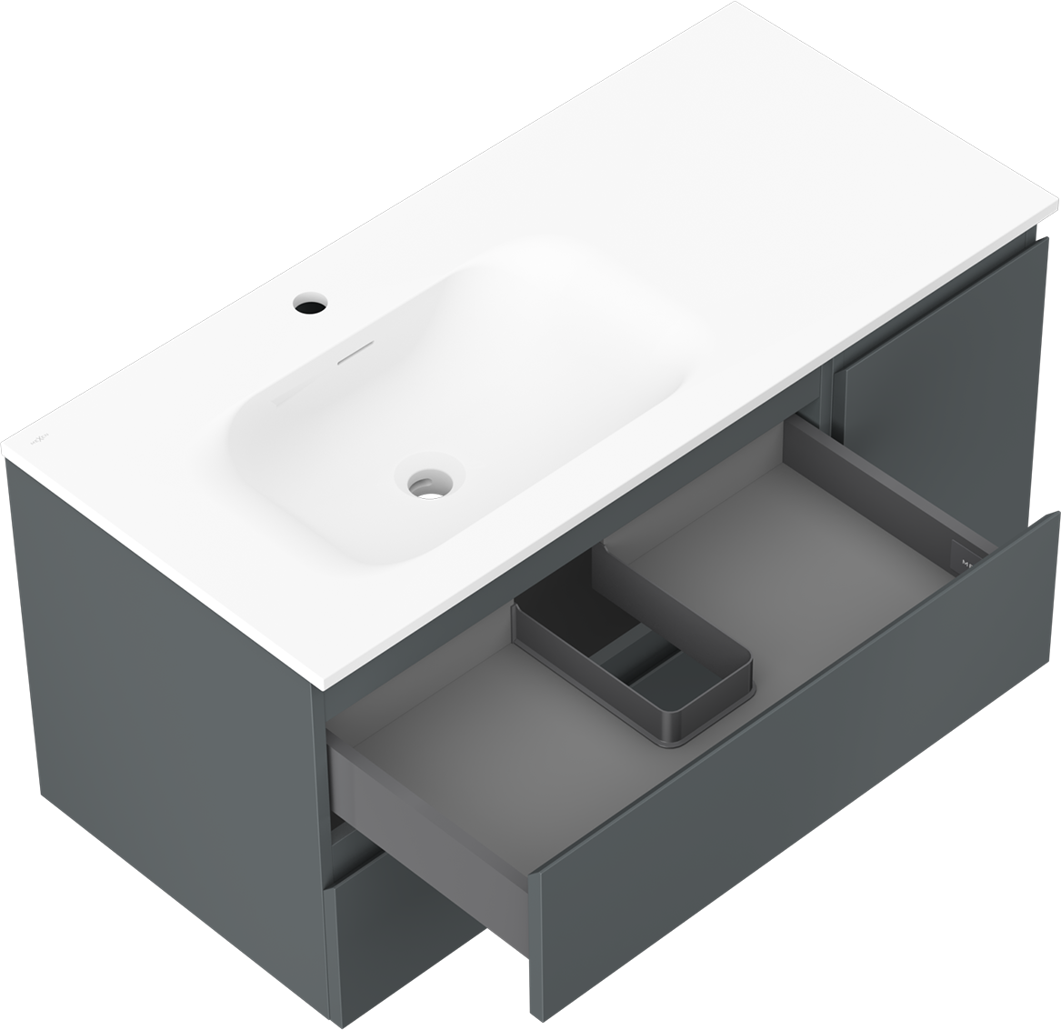 Mexen Orio bathroom cabinet 100 cm with Vela left sink, 2S, 1D, matte graphite/white matte - 91A13-10047-3-BBFFF66-W23L01