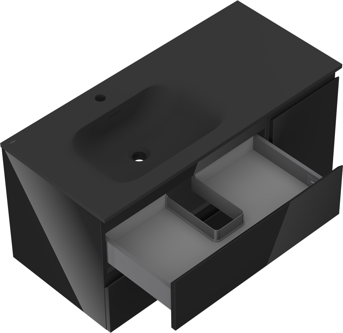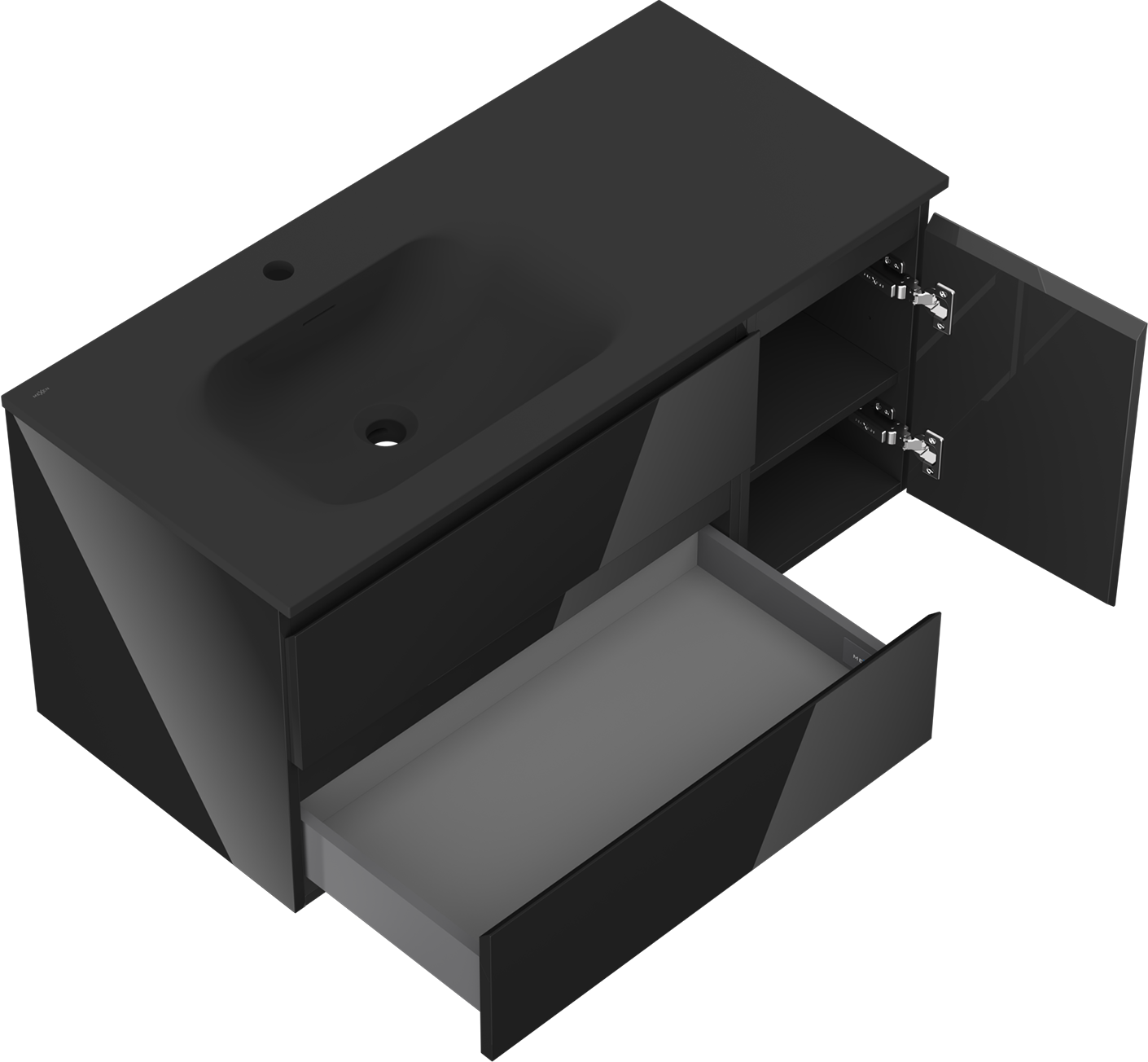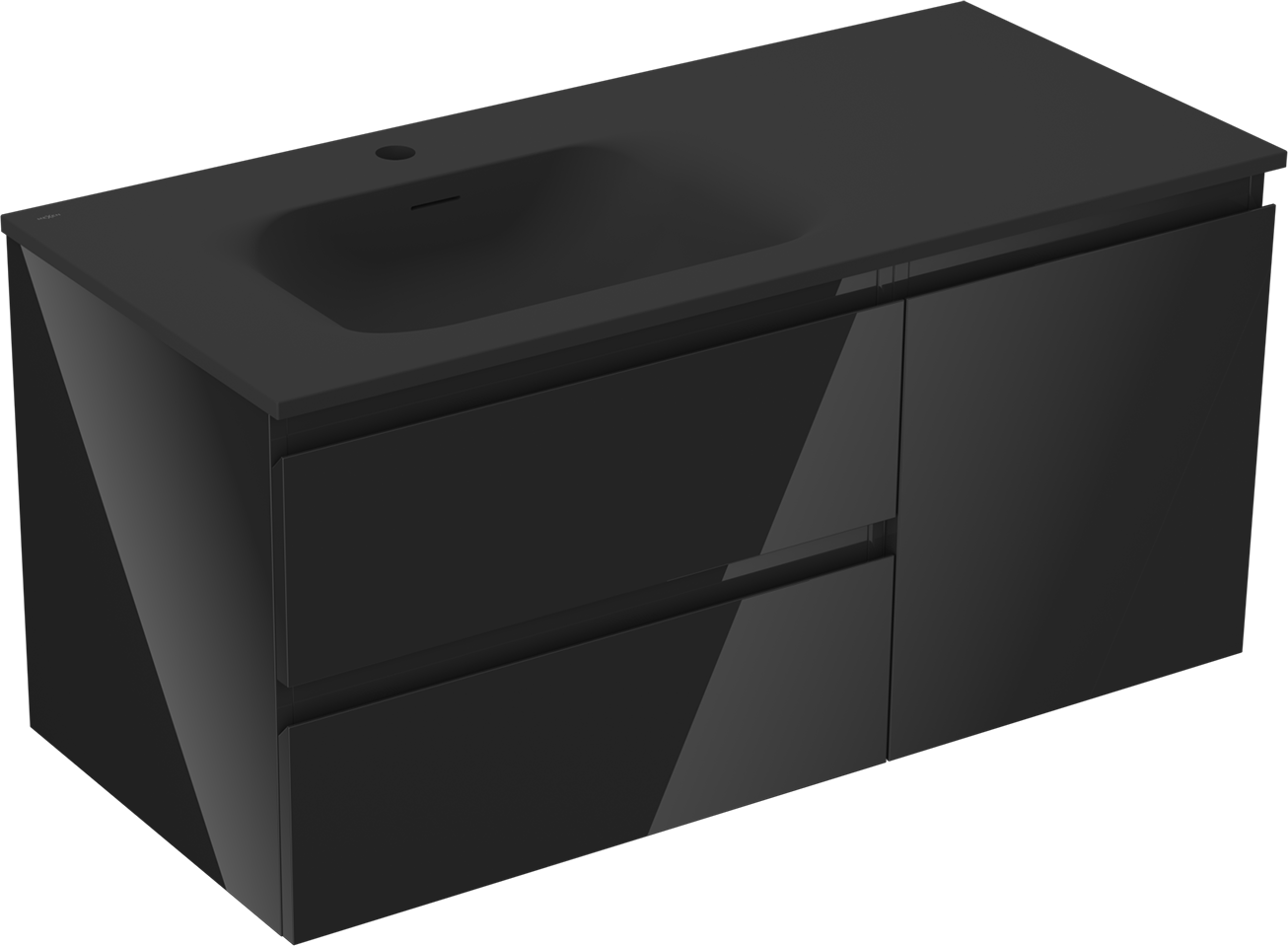Mexen Orio bathroom cabinet 100 cm with Vela left sink, 2S, 1D, black gloss/black matte - 91A13-10047-3-BBFFF70-W23L71