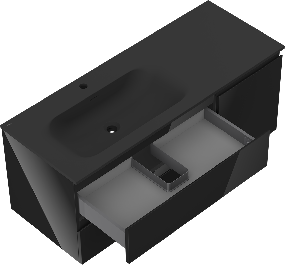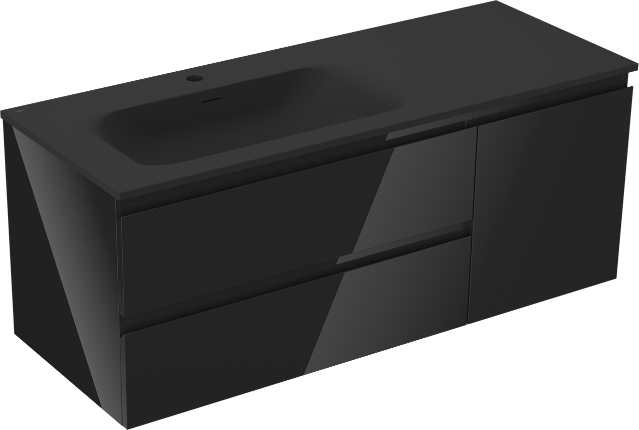 Mexen Orio bathroom cabinet 120 cm with Vela left basin, 2S, 1D, black gloss/matte black - 91A13-12047-3-BBFFF70-W23L71