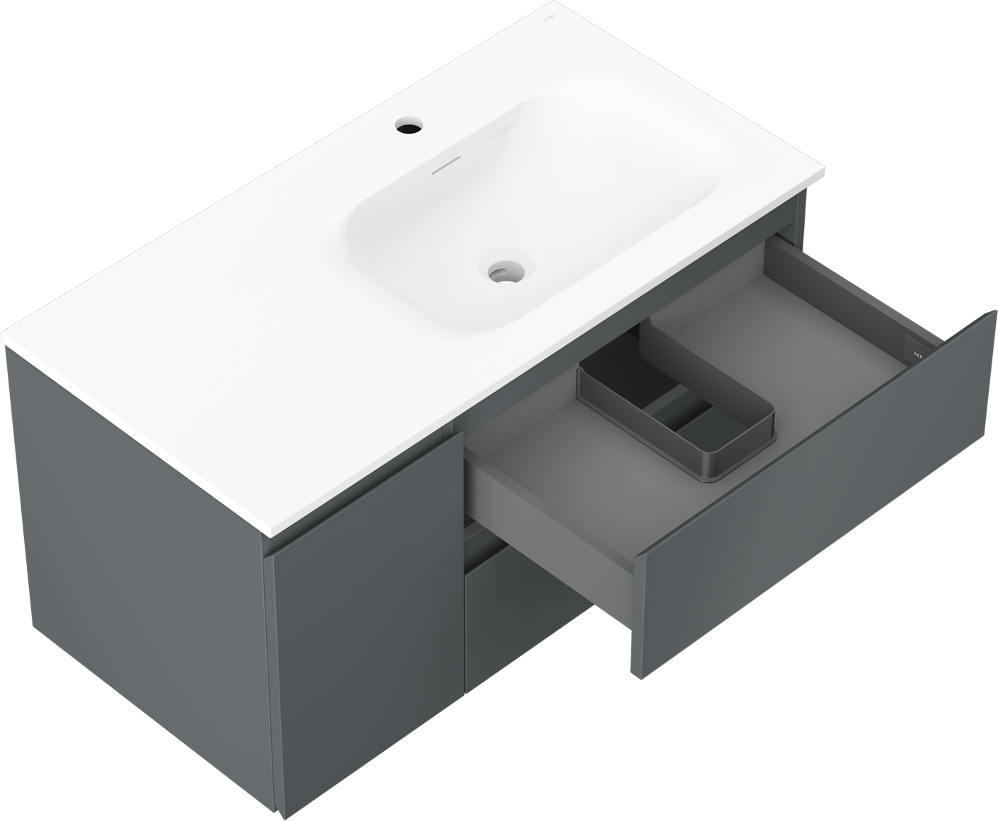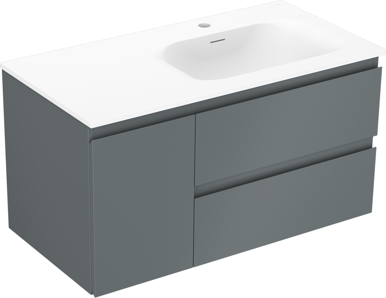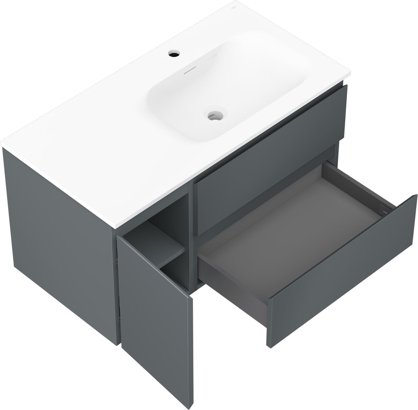 Mexen Orio bathroom cabinet 90 cm with right Vela sink, 2S, 1D, graphite matte/white matte - 91A13-09047-3-BBFFF66-W23P01