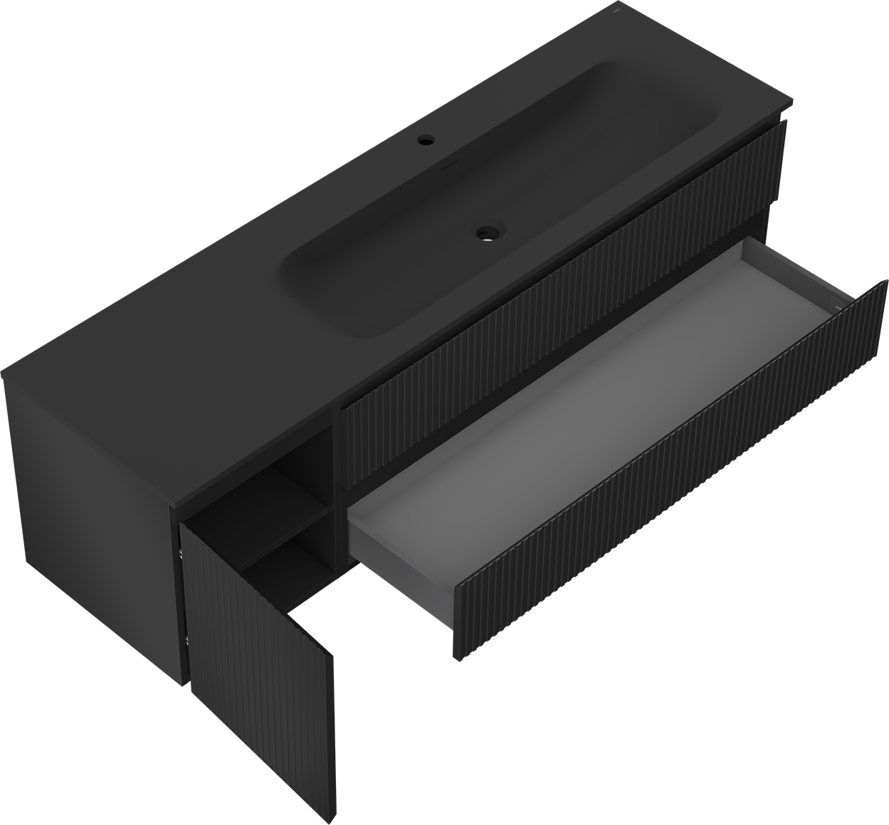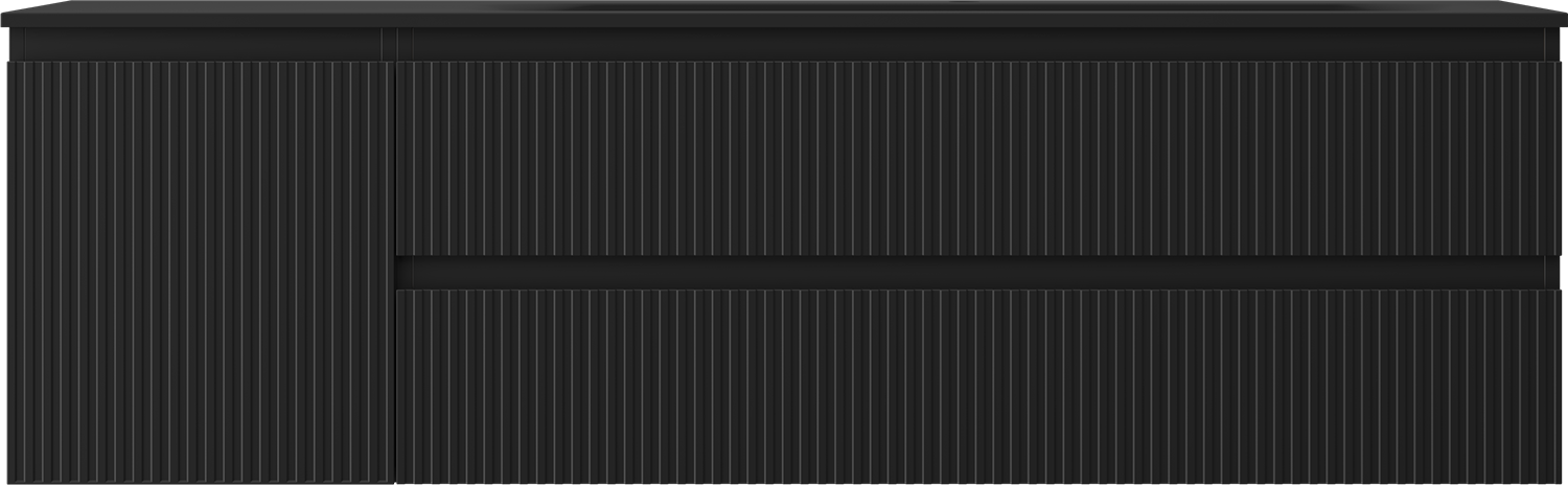 Mexen Rivel bathroom cabinet 160 cm with Vela right washbasin, 2S, 1D, fluted, black matt - 91A23-16047-3-BBFFF71-W23P71