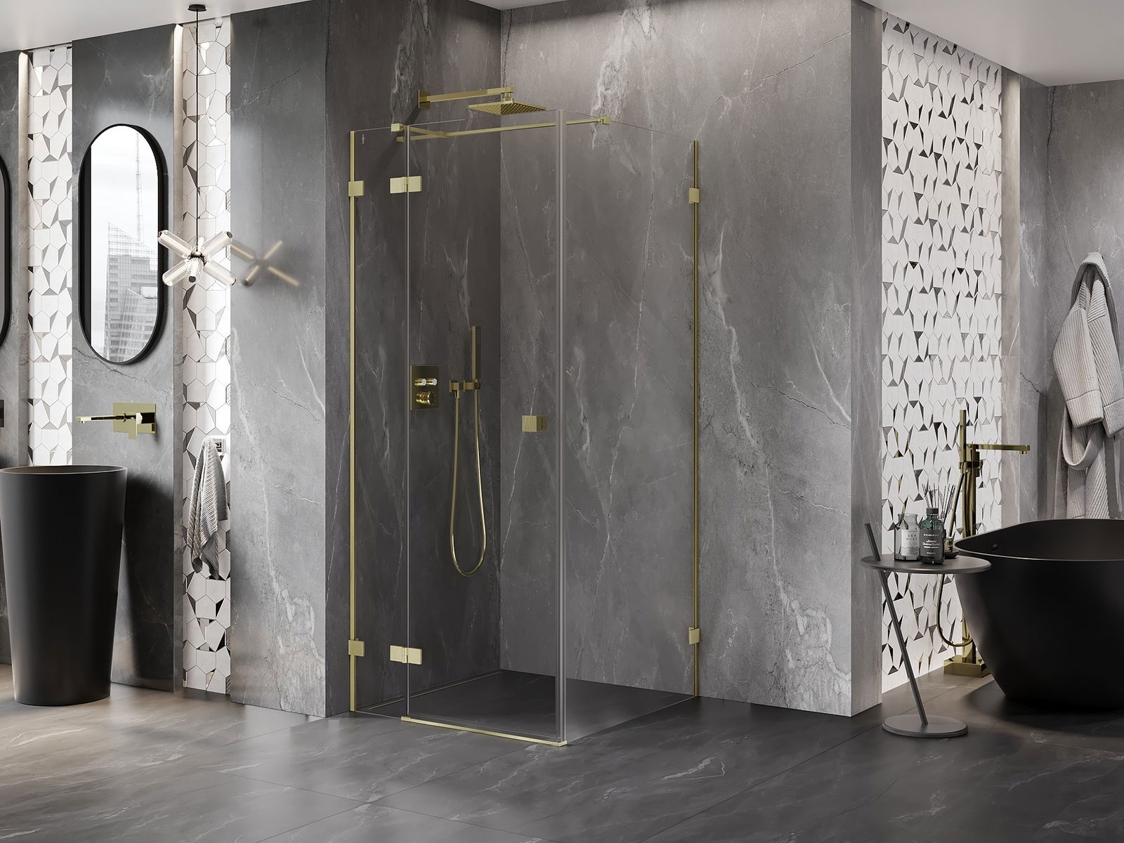 Mexen Lunar T left-hand swinging shower enclosure 70 x 70 cm, transparent, brushed gold - 834T-070-070-55-00-L