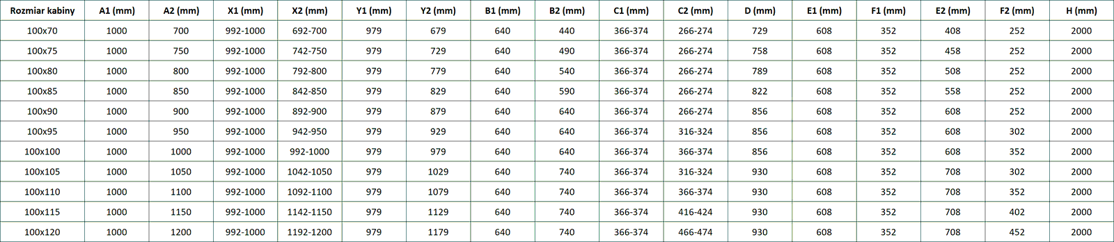 Size: 100x95 cm (right door 100 cm, left door 95 cm)