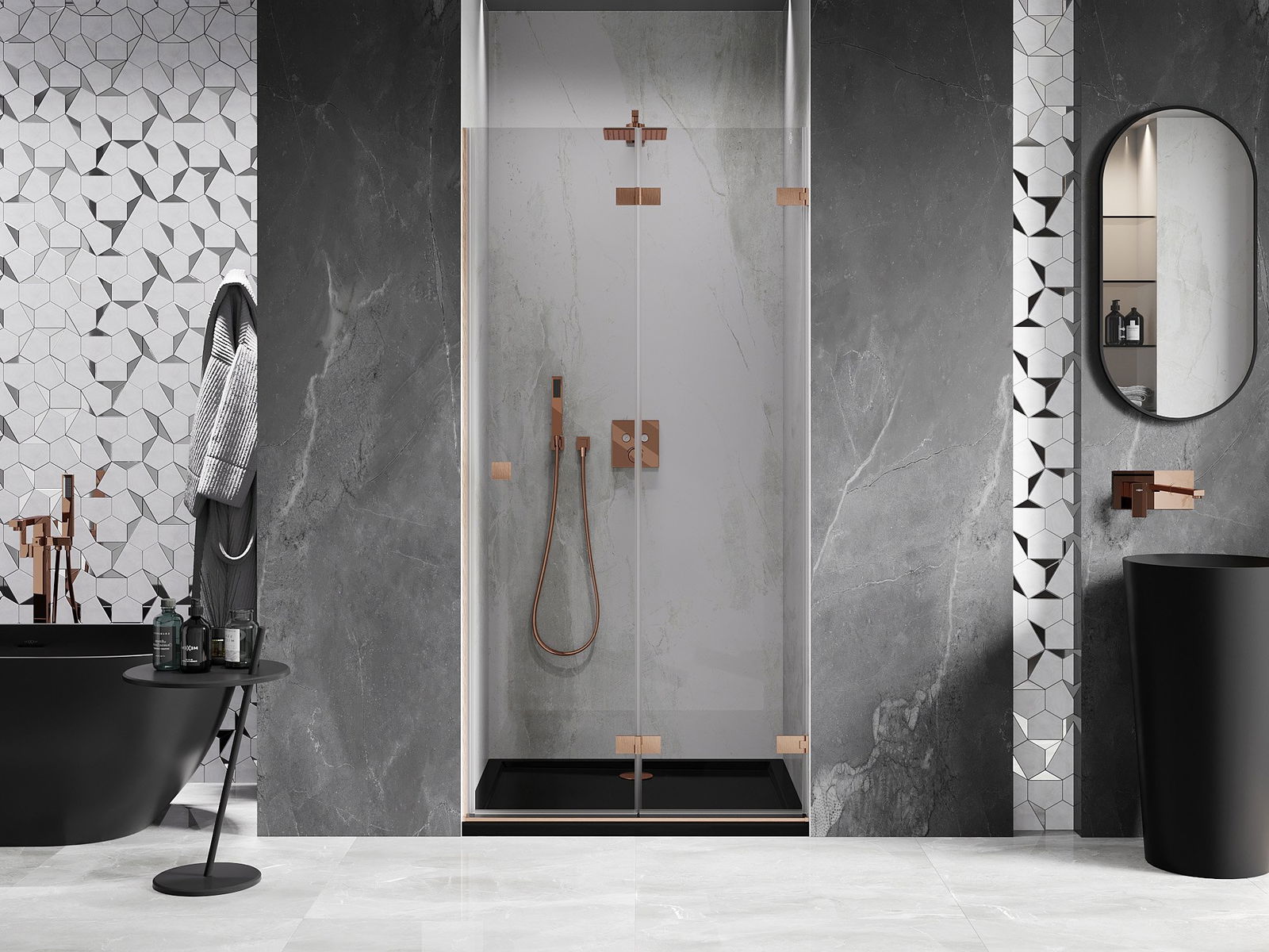 Mexen Lunar-F right folding shower door 50 cm, transparent, brushed copper - 836-050-000-65-00-P