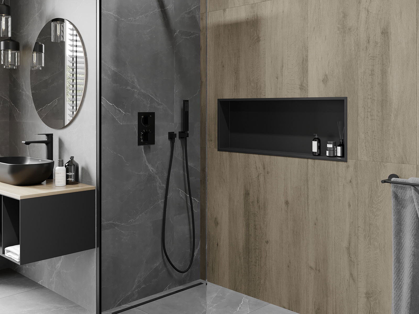 Mexen X-Wall-R nisplank met kraag 90 x 30 cm, zwart - 1970903010
