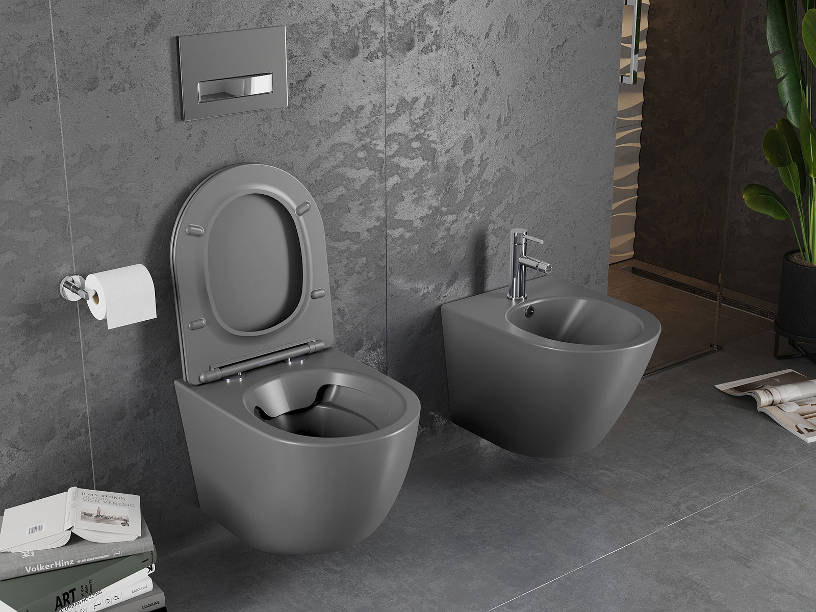 Mexen Lena wc-kom Rimless met soft-close slanke zitting, duroplast, donkergrijs mat - 30224071