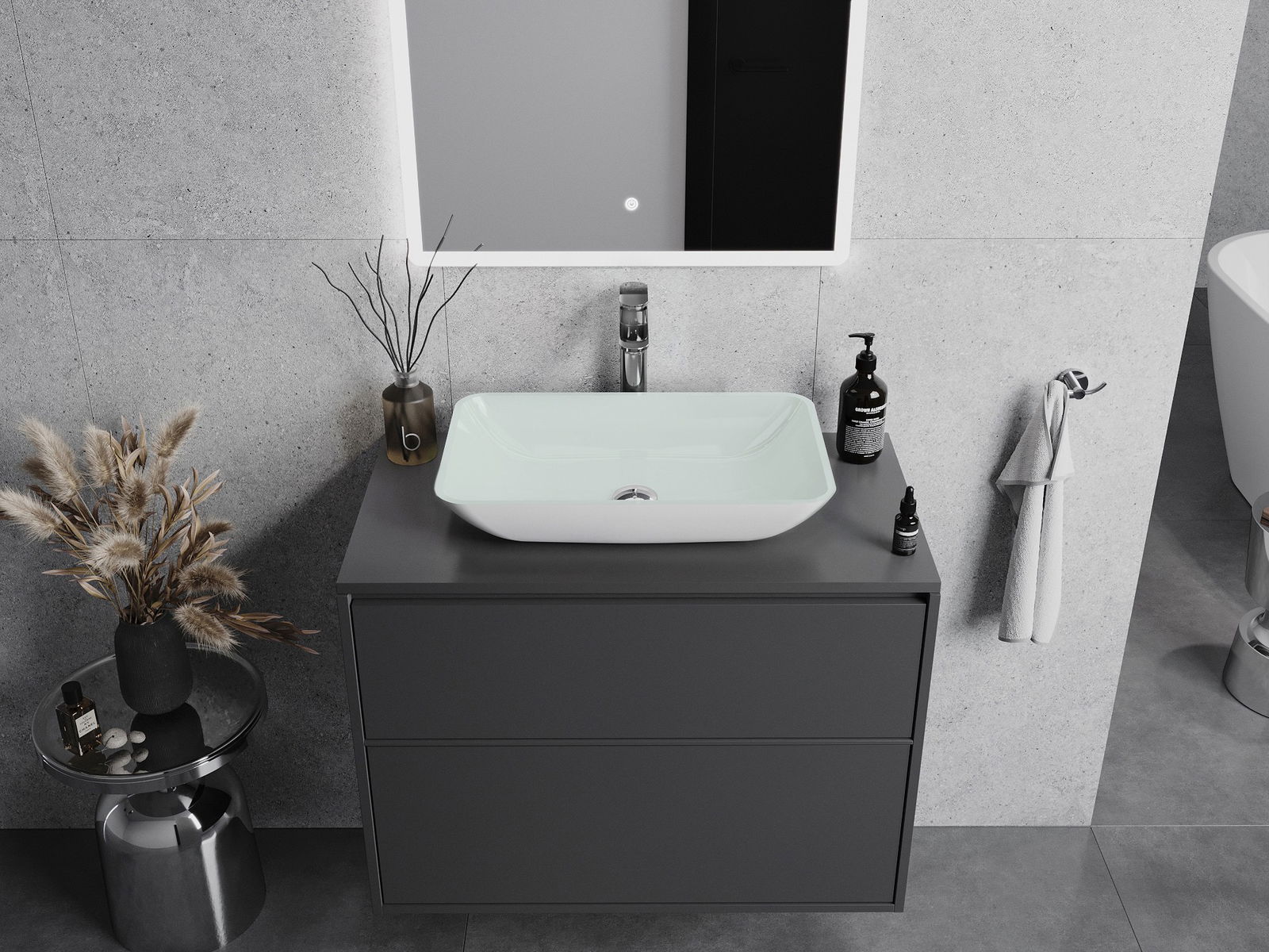 Mexen Megan glazen opbouw waskom 56 x 36 cm, wit - 24135630