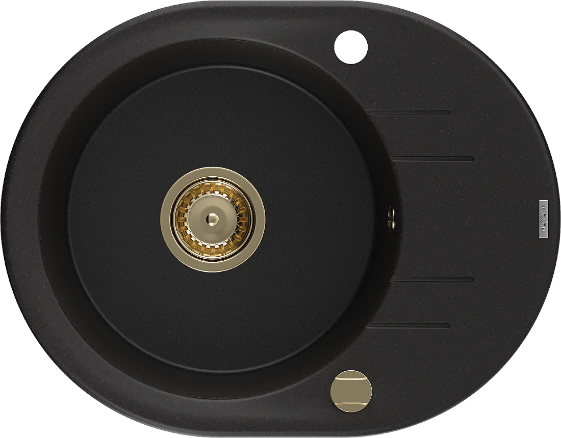 Mexen Kevin granieten spoelbak 1-komors met afdruiprek 586 x 458 mm, zwart, gouden sifon - 6517581005-77-G