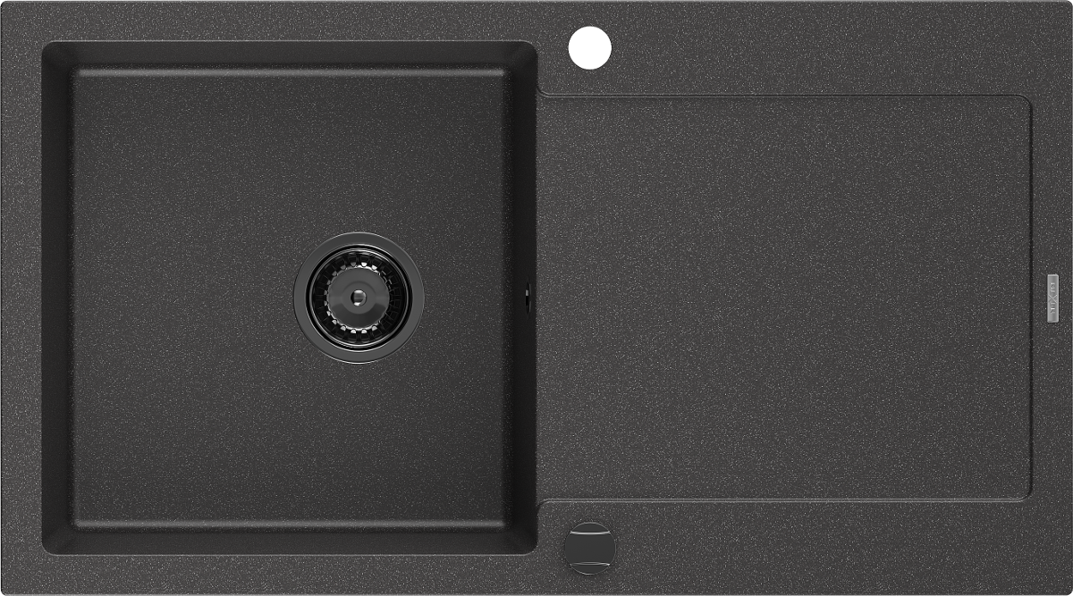 Mexen Leo granieten gootsteen 1-kompartement met afdruipgedeelte 900 x 500 mm, zwart gespikkeld, zwarte sifon - 6501901010-76-B