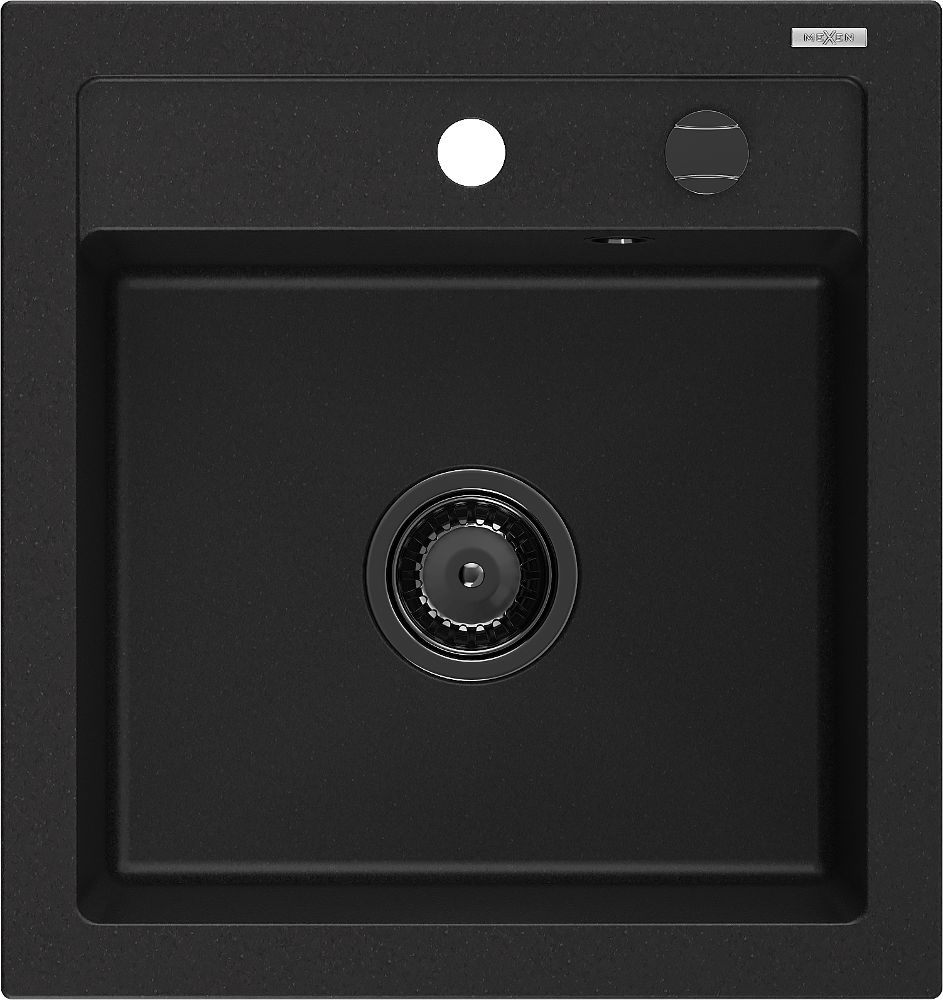 Mexen Vito granieten gootsteen met 1 bak 520 x 490 mm, zwart, zwarte sifon - 6503521000-77-B