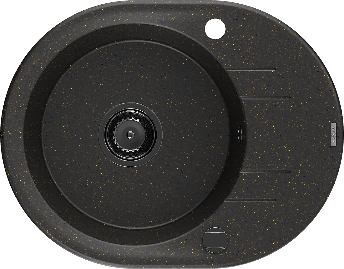 Mexen Kevin granieten spoelbak 1-compartiment met afdruiprek 586 x 458 mm, zwart/goud metallic, zwarte sifon - 6517581005-75-B
