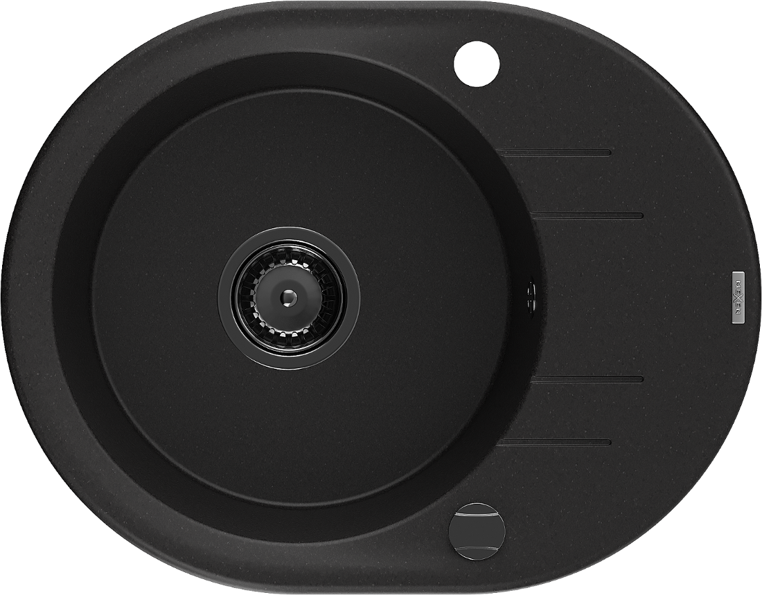 Mexen Kevin granieten spoelbak 1-komerig met afdruiprek 586 x 458 mm, zwart, zwarte sifon - 6517581005-77-B