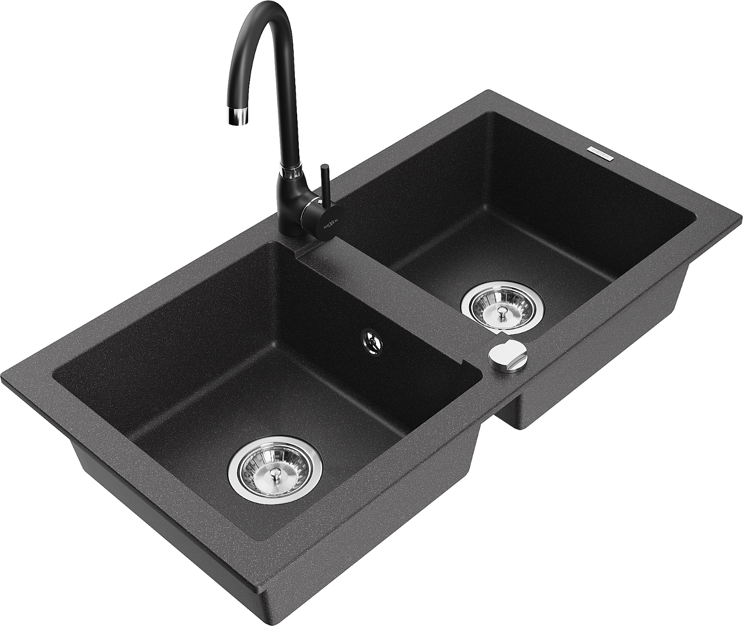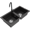 Mexen Mario granieten gootsteen met 2 kamers en keukenmengkraan Telma, zwart gespikkeld - 6504-76-670200-70