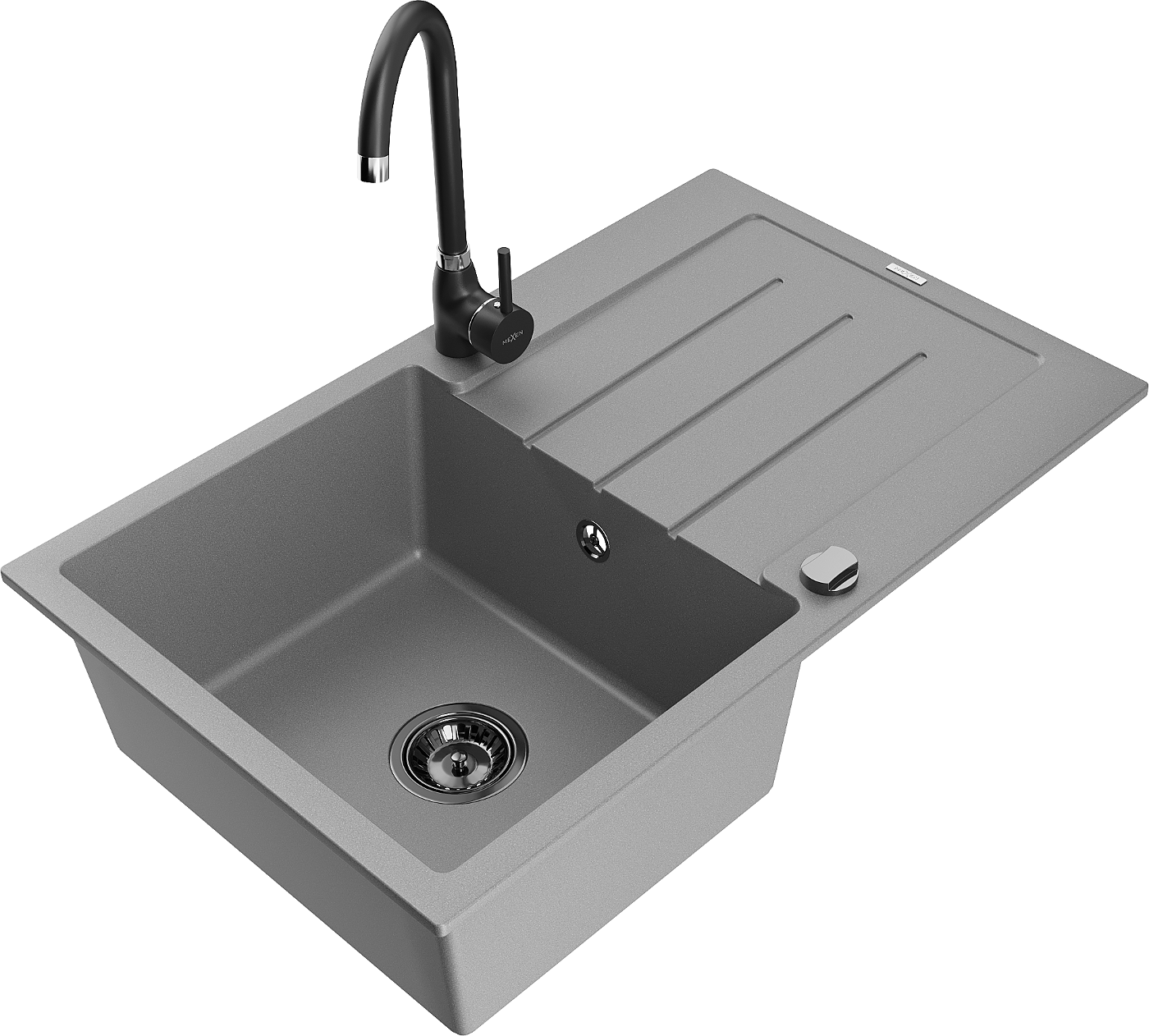 Mexen Bruno 1-komorige granieten spoelbak met afdruiprek en keukenkraan Telma, grijs - 6513-71-670200-70-B