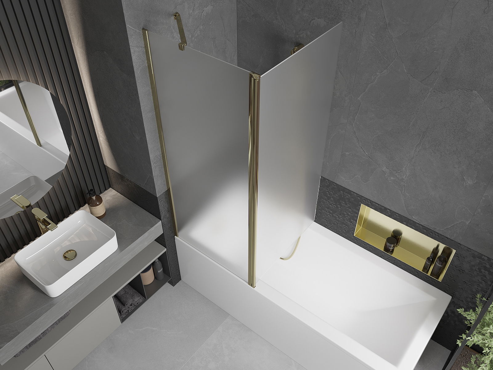 Mexen Flip badwand tweedelig 140 x 150 cm, ijsglas, goud - 894-140-101-50-30