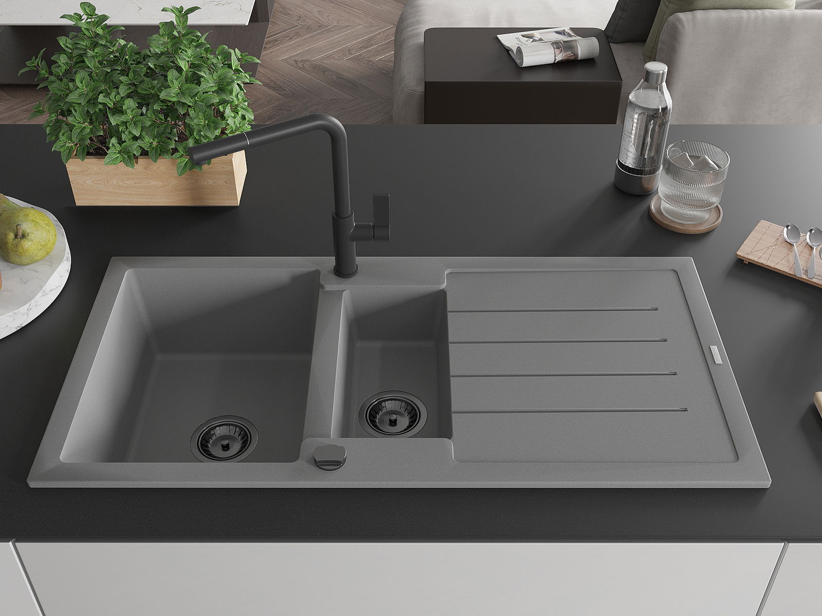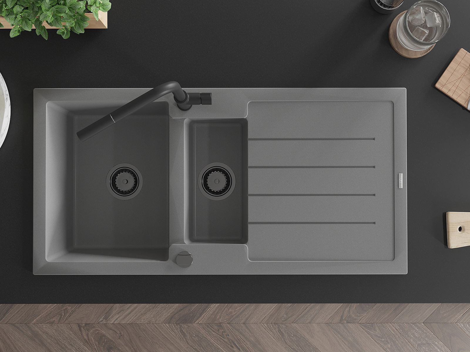Het oppervlak van de spoelbak is zeer goed gehard en biedt een uitzonderlijke weerstand tegen mechanische beschadigingen en krassen. Het duurzame materiaal zorgt ervoor dat u jarenlang van zijn mooie uiterlijk kunt genieten.