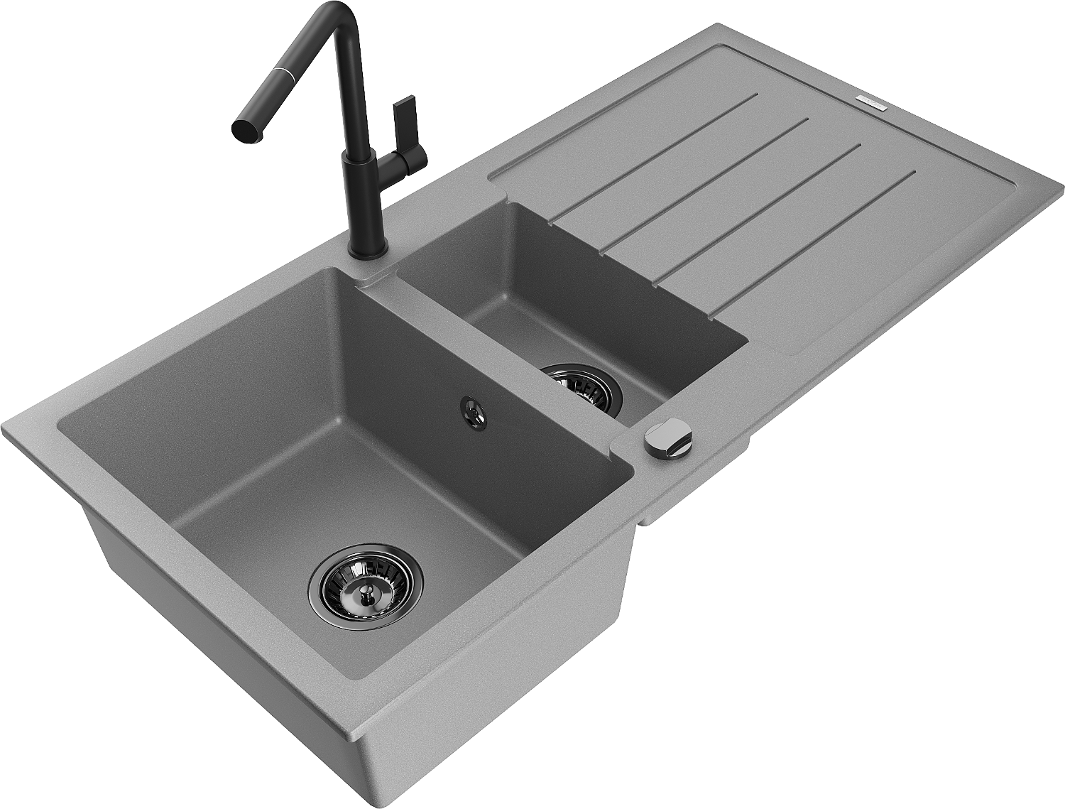Mexen Andres granieten gootsteen 1,5-komers met afdruiprek en keukenmengkraan Flora, grijs - 6515-71-670401-70-B