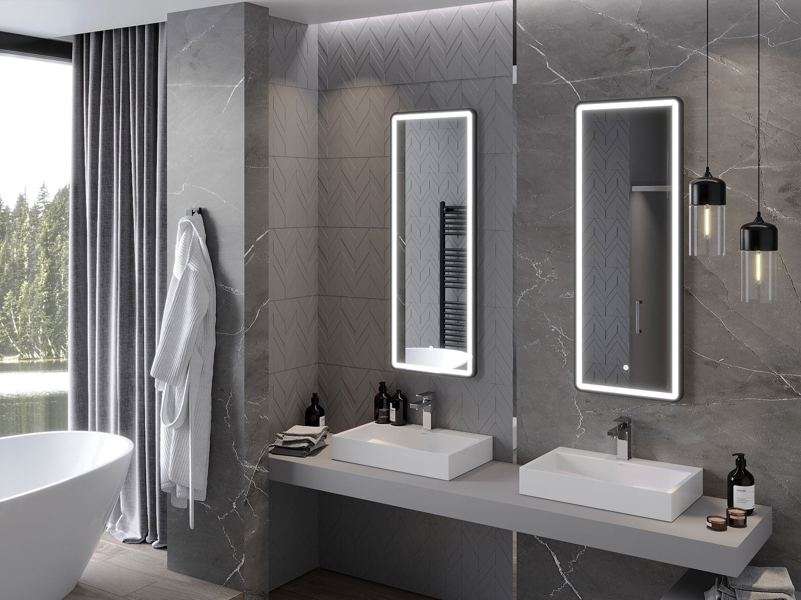 Mexen Coro verlichte badkamerspiegel 45 x 120 cm, LED 6000K, anti-condens, zwarte frame - 9817-045-120-611-70