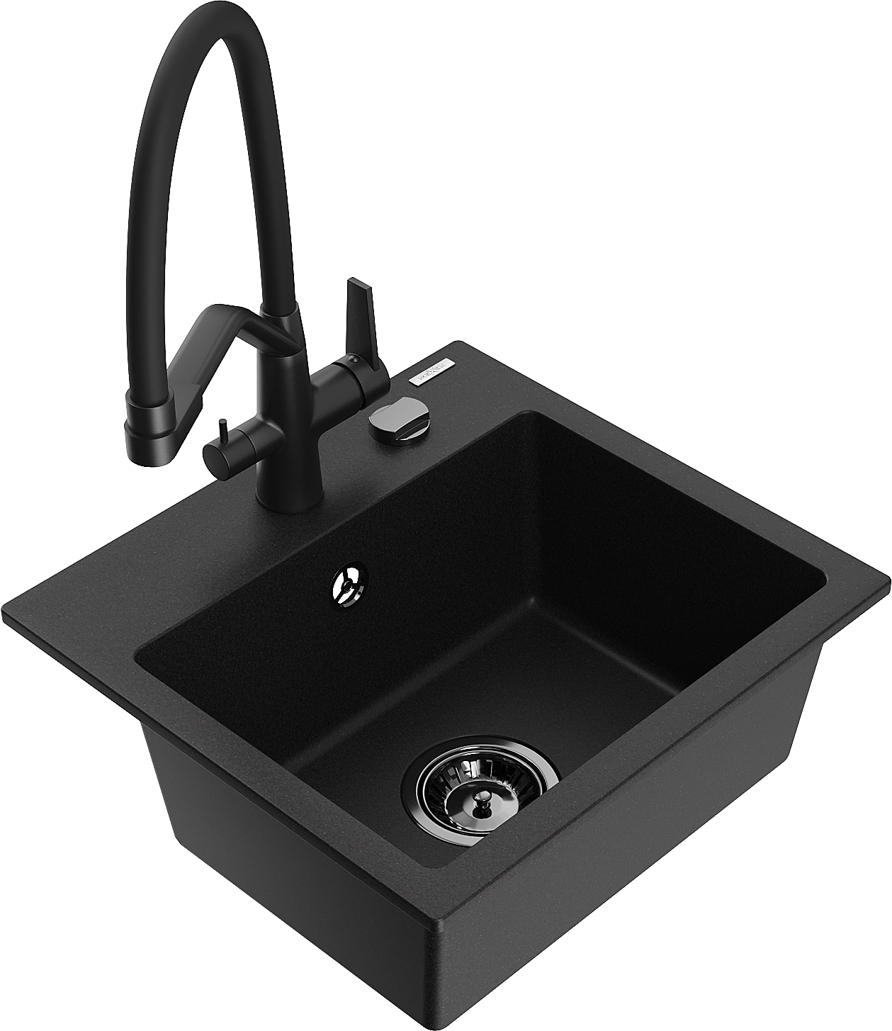 Mexen Milo granieten gootsteen 1-kamer met keukenkraan Duo, zwart - 6505-77-671701-70-B