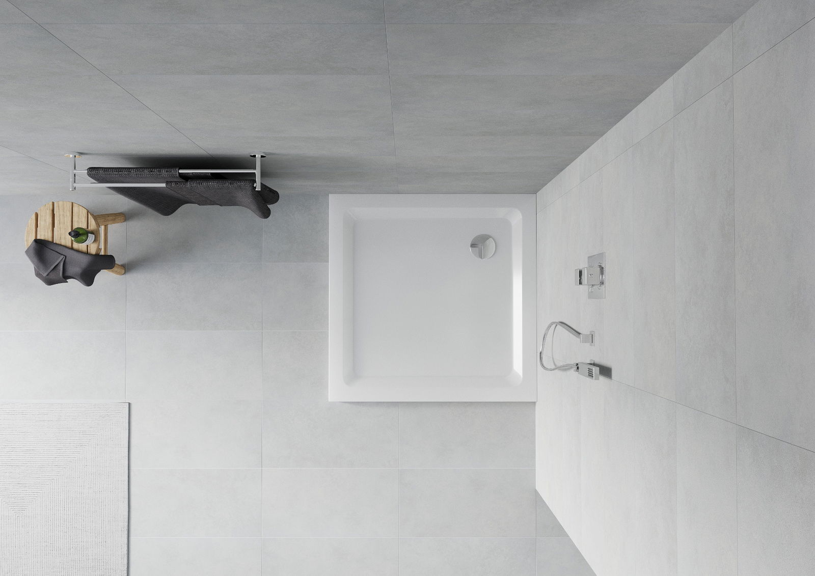 De douchebak is zo ontworpen dat het water vrij naar de afvoer kan stromen. Dit zorgt voor een snelle en efficiënte afvoer van het oppervlak van de douchebak, waardoor plassen en overstromingen in de badkamer worden voorkomen.